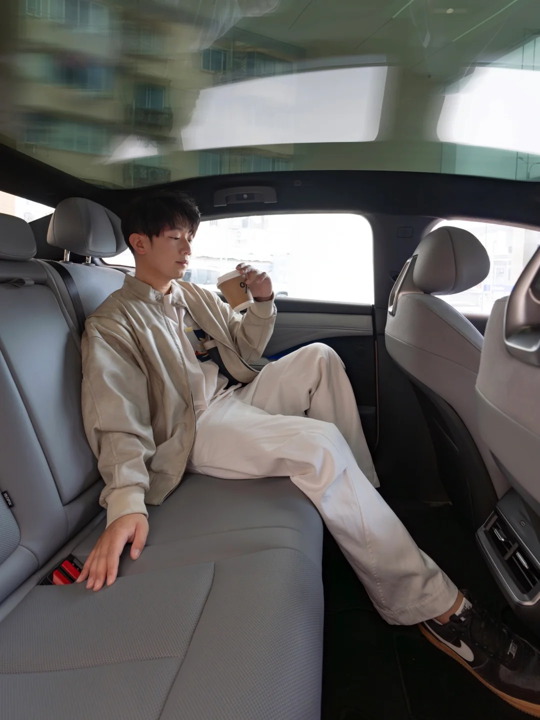 打开车窗,微风拂面,听着音乐