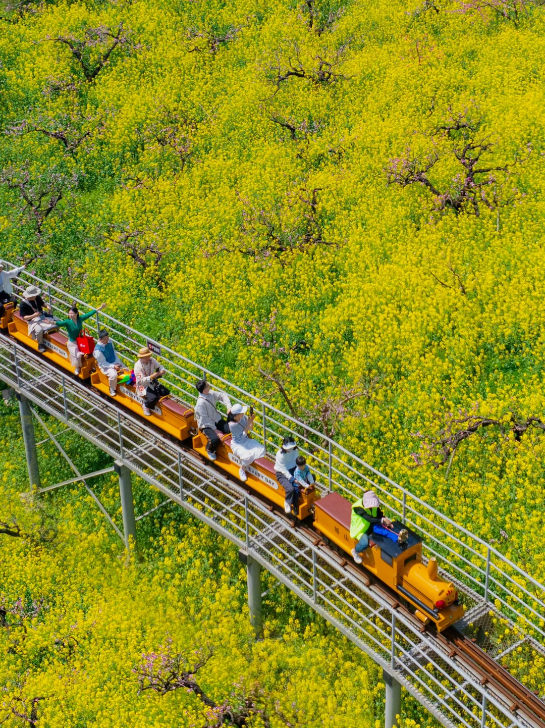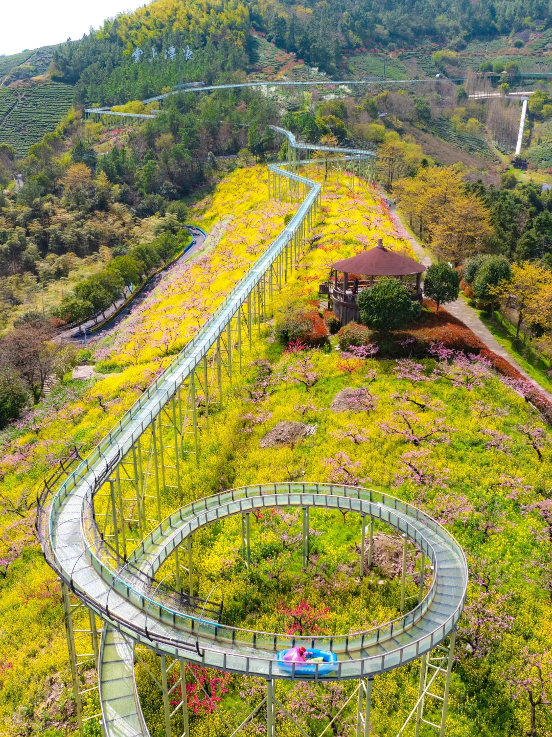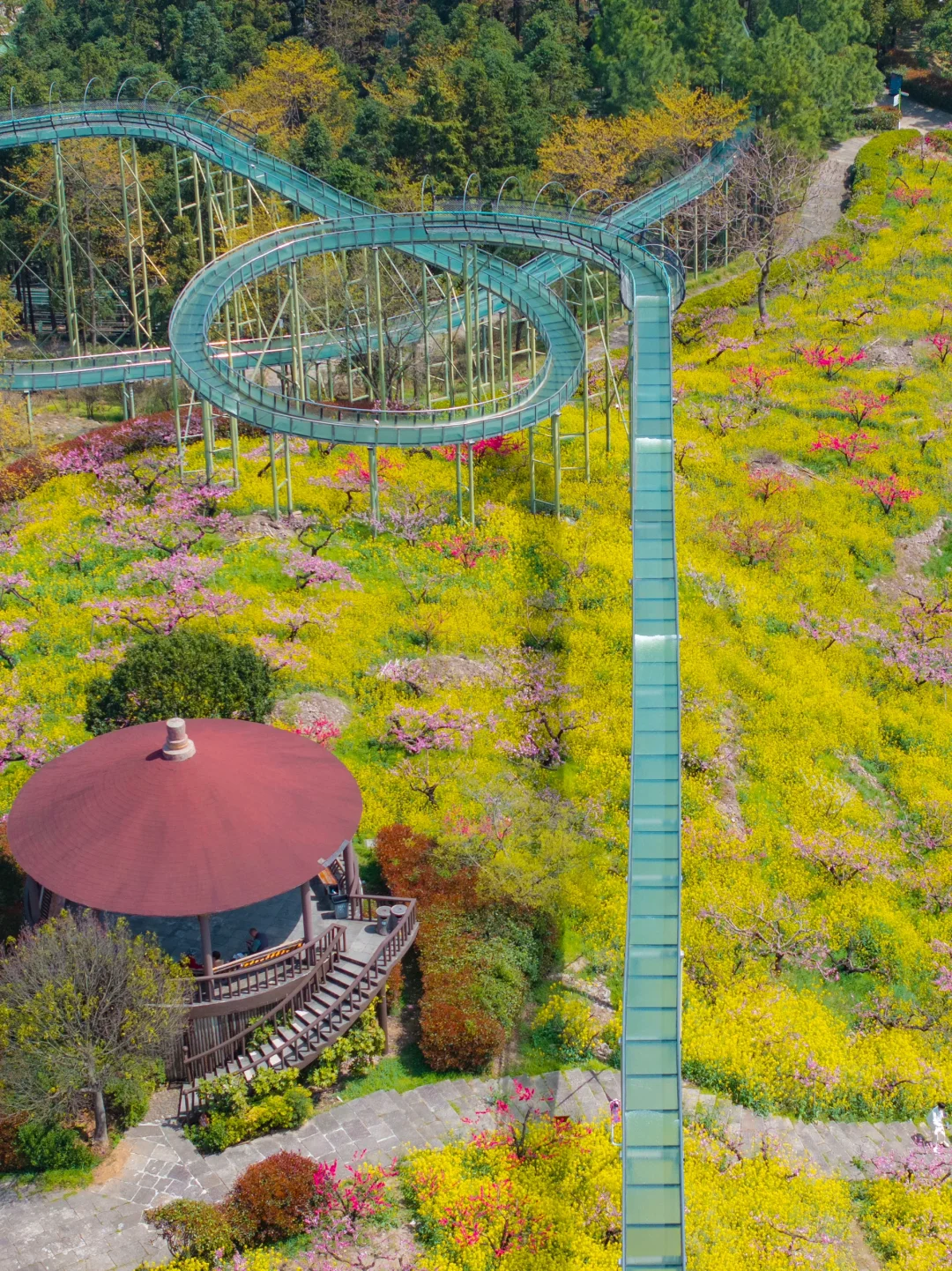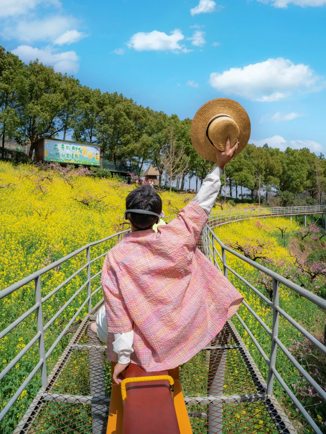 在湖州有一辆开往春天的漫画小火车 驶过油菜花海,看满山桃花开遍山坡 山上玩漂流开飞车 山下互动萌宠喝咖啡 坐拥一整个山头的游乐场 一份保姆级攻略分享给你 - 📍城山沟景区[搜索高亮] 🚗杭州自驾1h,湖州动车站打车20分钟 - 🌈推荐游玩打卡顺序 观光车➡️极地滑车➡️空中小火车➡️魔毯➡️云上漂流➡️花果山乐园 - 🌈玩乐推荐 1⃣️极地滑车:1200米新西兰滑板车在油菜花海中穿梭,是一场玩乐与视觉盛宴 2⃣️空中小火车:开往春天的小火车在油菜花海中驶过,仿佛传入宫崎骏的漫画世界 3⃣️云上漂流:在山顶漂流而下,俯瞰春日美景 4⃣️花果山乐园:里面有很多可爱的萌宠可以喂养 - 📷拍照攻略 🔸红房顶阁楼边上有条石板路,在石板路上,用无人机拍,有种置身花海的感觉 🔸萌宠乐园里有个观景台,可以拍到与小火车与油菜花海合影的人生照片 - ☕️孤岛咖啡 景区门口有个孤岛咖啡,里面桃花开的正好,还有很多打卡装置,拍照十分出片 -