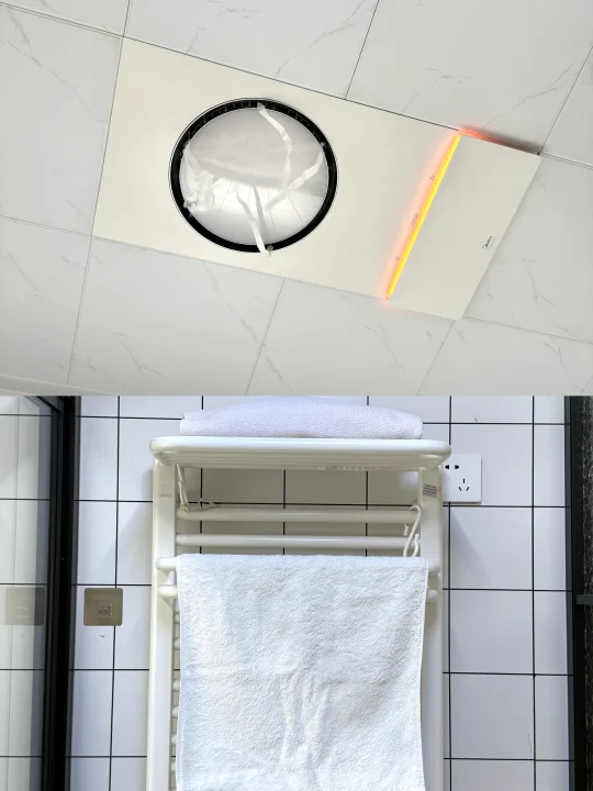 而且区别于我家之前直吹且风力不能调控的浴霸
