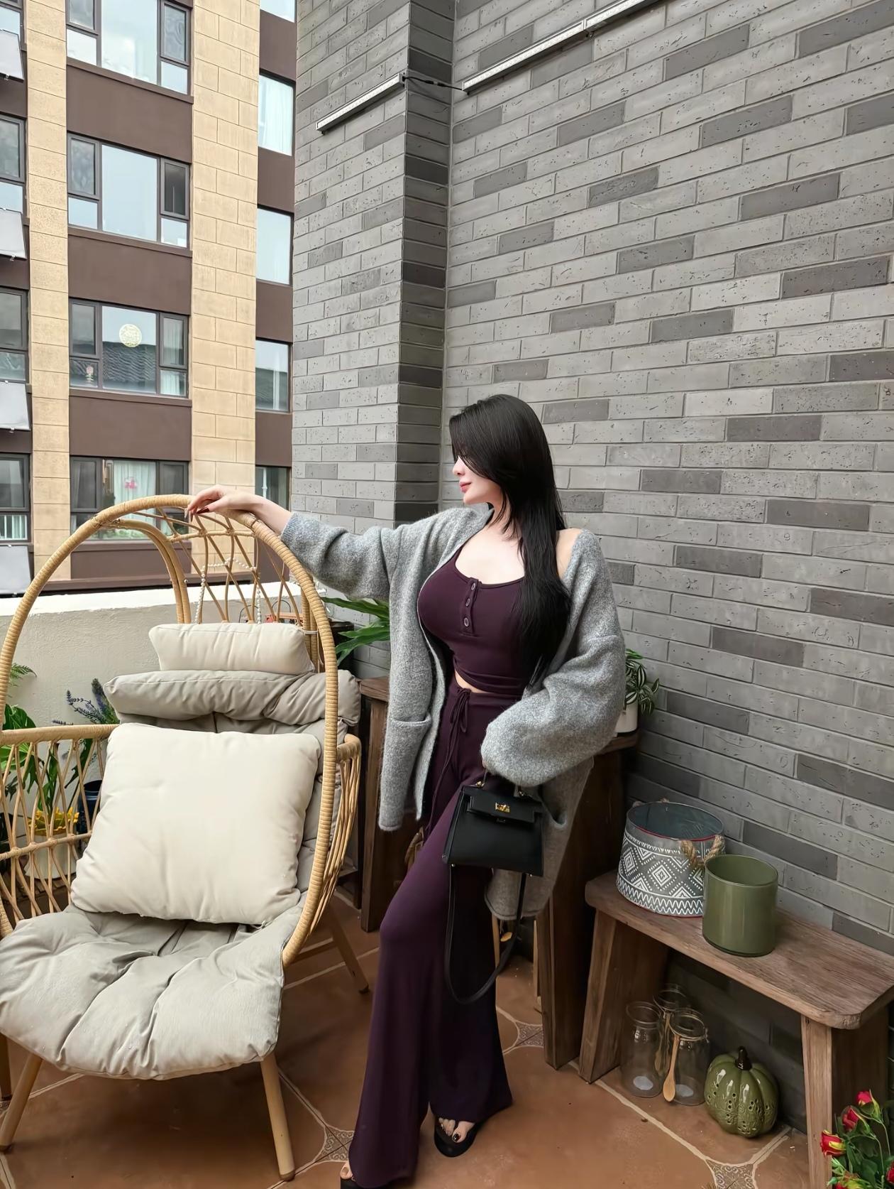 优雅穿搭指南:灰色开衫+紫色连衣裙,尽显时尚魅力!