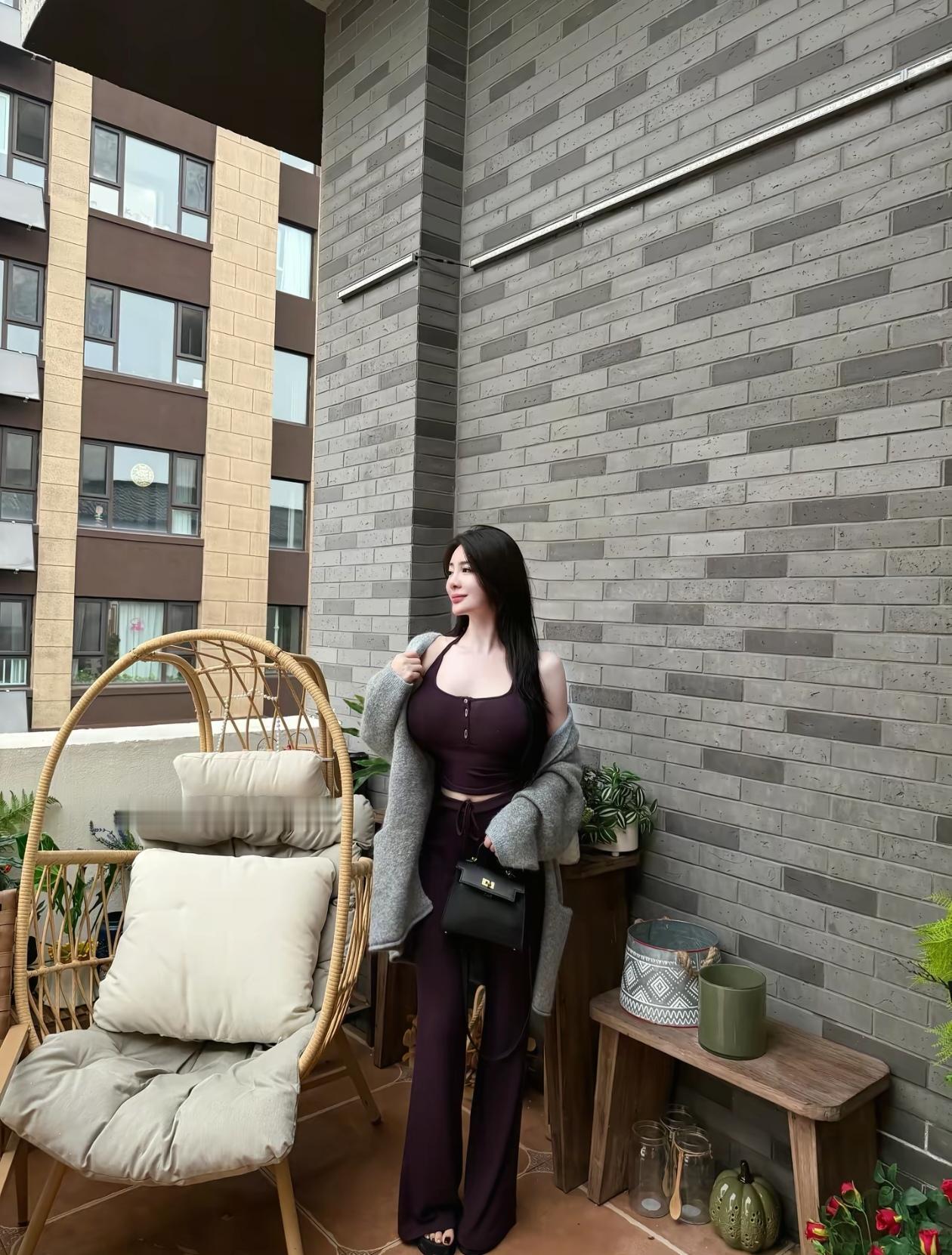 电梯自拍,紫色蕾丝上衣搭配黑色牛仔裤,优雅气质满满!💄👗👠