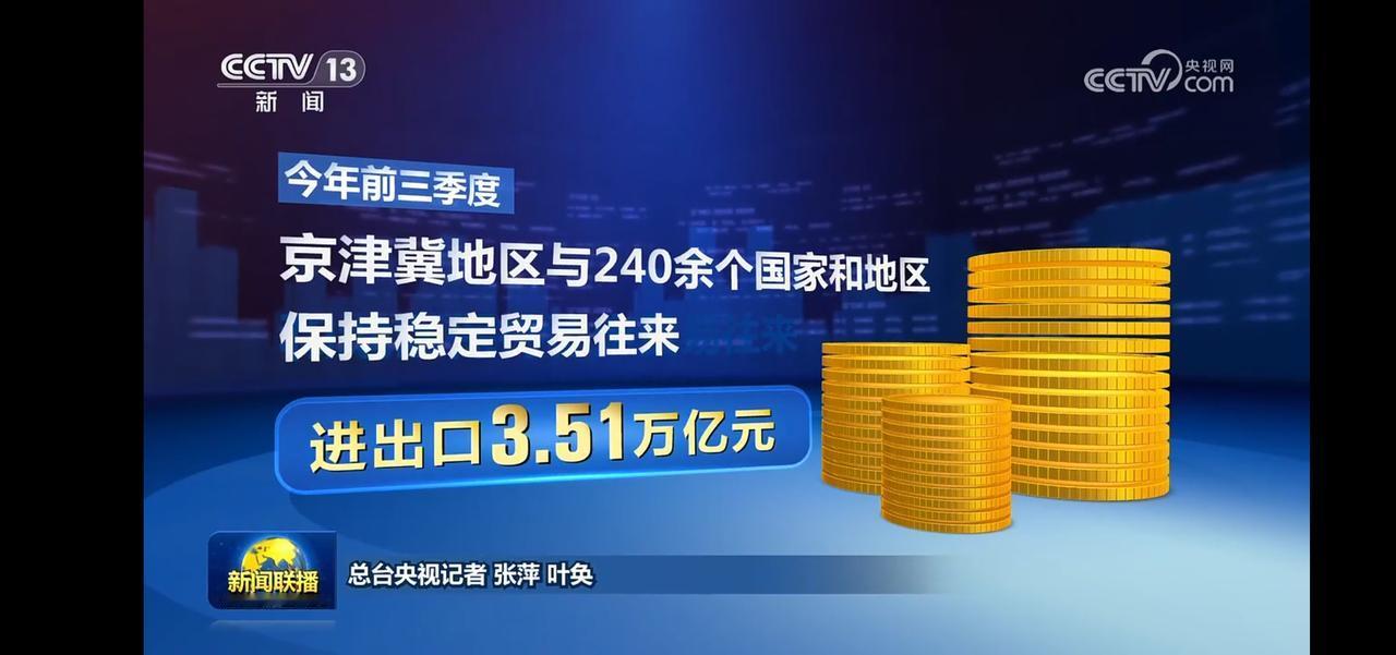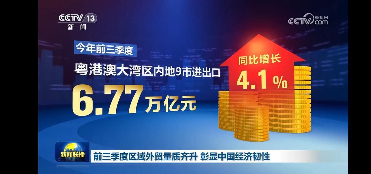 前三季度区域外贸量质齐升 长三角地区12.62万亿,同比增长6.6% 大湾区内地9市进出口6.77万亿元,同比增长4.1% 京津冀进出口3.51万亿元,其中出口1.07万亿元。