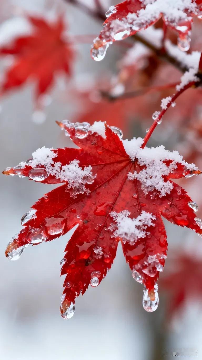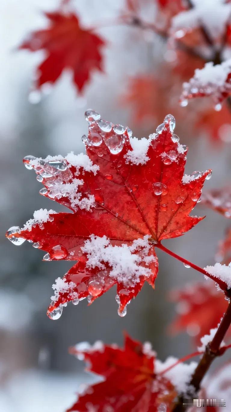 枫叶流丹,似火情燃岁月;雪花飘絮,如琼花缀梦枝,天地皆成妙境
