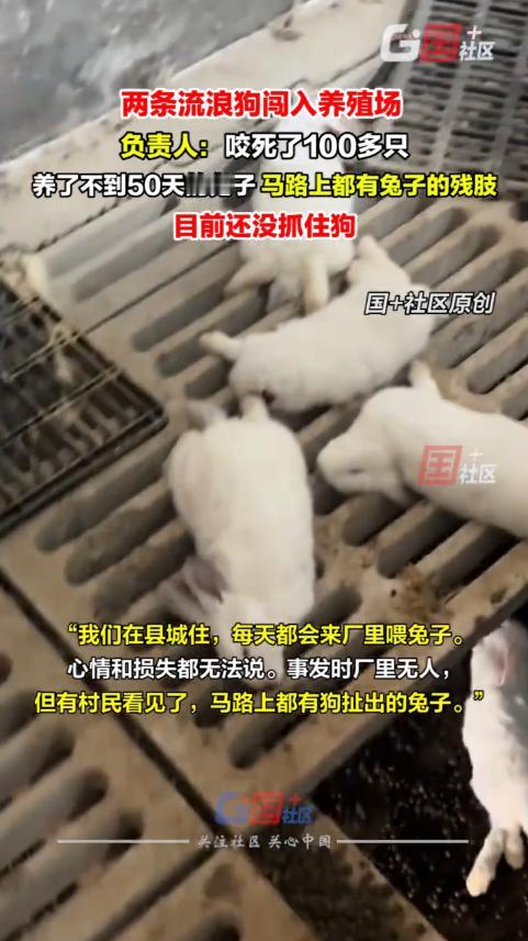 “悲剧还是发生了!”陕西咸阳,一女子在村里养兔子,这天她去喂兔子时,发现马路上有死兔子,意识到大事不妙的她急忙赶回养殖场,看到地上都是死兔子,询问村民后才得知,是2条流浪狗钻进场子干的“好事”!网友:花钱买教训! 农村搞养殖真的是提着心过日子! 陕西咸阳这对夫妻的遭遇,看完让人忍不住心疼又揪心! 11 月 4 日中午,王女士(化名)像往常一样从县城驱车回村,准备给自家养殖场的小兔喂食。 刚走到半路,路边几只死兔让她心里一沉,直觉告诉她:出事了! 她一脚油门加快速度,赶到养殖场推开大门的瞬间,直接瘫坐在地。 笼舍被翻得东倒西歪,地面血迹斑斑,兔毛、羽毛散落一地,100 多只还没满两个月的小兔,全被活活撕咬致死。 谁能想到,这些倾注了夫妻二人心血的小家伙,一夜之间就没了。 王女士和丈夫都在县城上班,平日里工作已经够忙了。 夫妻俩每天挤时间往返县城和村里,按时给小兔投喂、清洁、消毒,就盼着这批兔子出栏,能给家里多添点补贴。 可这一场意外,让所有辛苦都打了水漂。 悲痛过后,王女士没乱了阵脚,先赶紧清点数量、拍照取证,连夜挨家挨户问邻居情况。 不少村民都说,前一晚见过两条流浪狗在养殖场周边转悠。 还有人亲眼看到,其中一条狗叼着兔子往村外跑,线索一下子指向了这两条流浪狗。 夫妻俩仔细检查笼舍,才发现地表下的一处管道被掀开了。 那个缺口刚好能让狗钻进去,正是这个安防漏洞,给了流浪狗可乘之机。 没有激烈争吵,也没有怨天尤人,夫妻二人先把重心放在处理后事和防疫上。 他们把小兔的残骸统一收集起来集中销毁,又对整个养殖场进行了全面消毒。 同时第一时间向村委和街道办报告情况,希望能得到防疫指导和相关帮助。 王女士说,钱没了可以再赚,可看着这些小生命被粗暴夺走,心里实在难受。 更让她担心的是,以后养殖的安全该怎么保障。 随后,夫妻俩立刻着手升级安防,把所有可能的入侵口都封堵严实,尤其是那处被破坏的管道。 又把围栏加高,还加装了钢丝网,夜间增设了照明和报警设备。 监控摄像头也全部更换扩容,确保夜间画面清晰,能覆盖到养殖场的每个角落。 村委也很快回应,说会联系城管和畜牧部门,对村里的流浪犬进行统一清理转运。 还会在村里推广养殖场防护规范,帮大家减少安全隐患。 这起悲剧也给所有养殖户提了三个醒: 第一,不管规模大小,安防都不能偷懒,围栏、监控、照明这些基础防护必须做到位。 第二,村集体和相关部门得重视流浪动物管理,它们不仅威胁家禽家畜,还可能带来公共卫生问题。 第三,遇到意外别慌,先取证再报告,及时处理防疫,才能避免更大损失。 现在夫妻俩还在慢慢恢复养殖秩序,可那 100 多只小兔的损失,还是让这个普通家庭承受了不小的压力。 农村养殖本来就靠天吃饭、靠力打拼,一点疏忽都可能让多年心血付诸东流。 希望其他养殖户能引以为戒,也希望相关部门能多帮衬一把。 你们觉得农村养殖场该怎么有效防范流浪动物? 对此,你有什么看法呢? 信息来源:国+社区