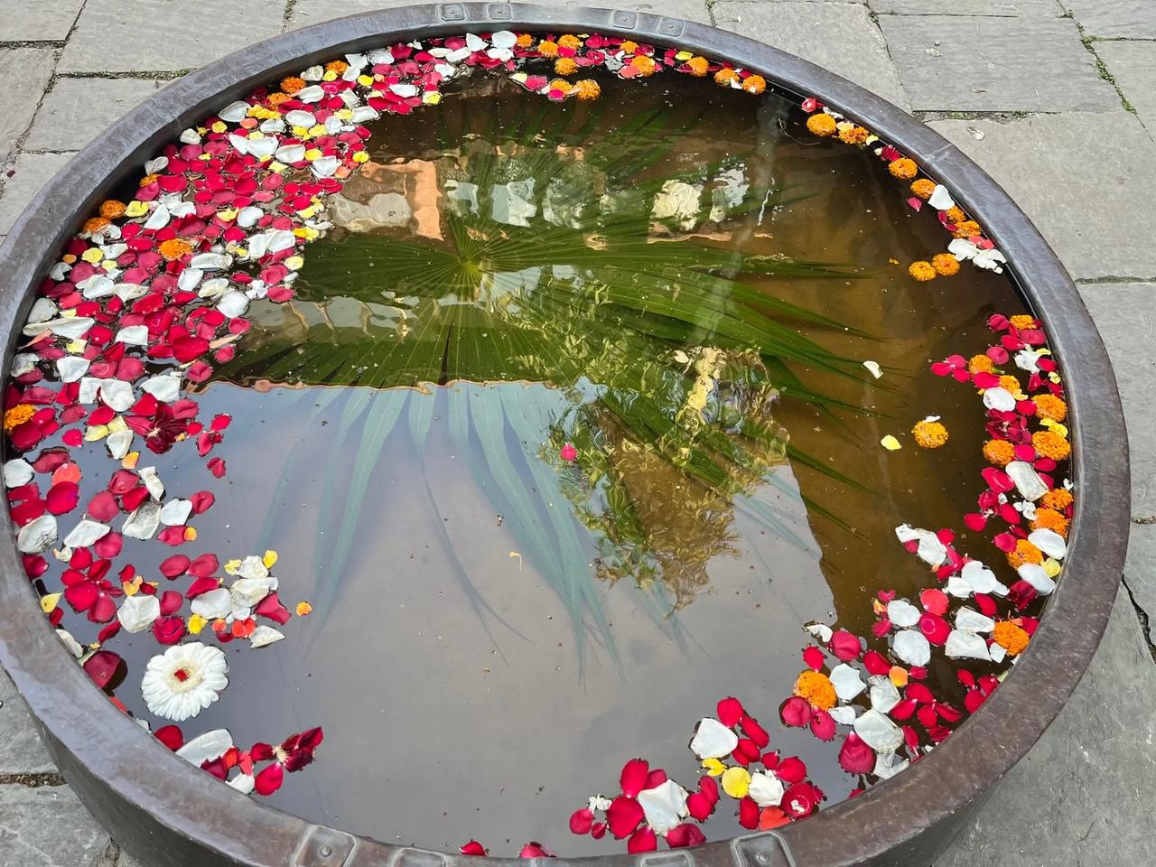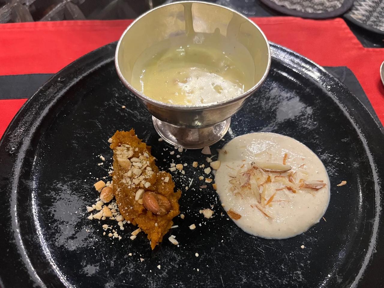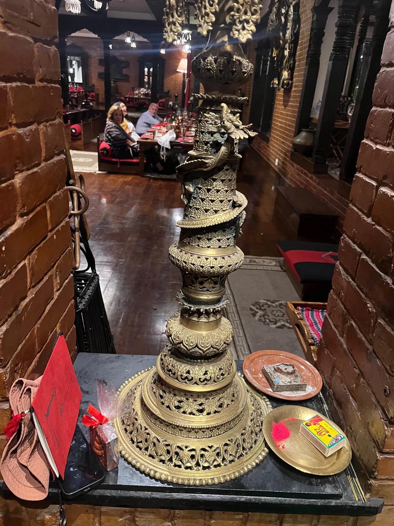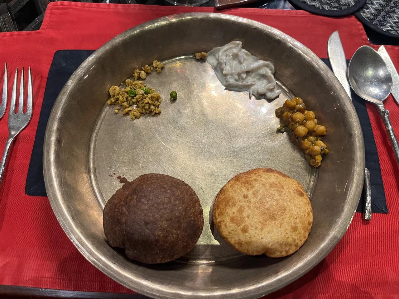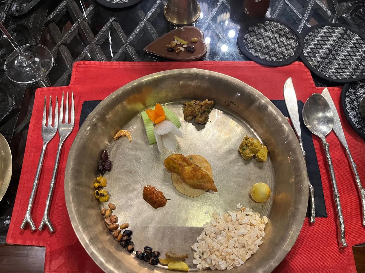 尼泊尔🇳🇵不丹🇧🇹探索之旅[玫瑰] 尼泊尔特色晚餐 尼泊尔行程的最后一顿晚餐,我们在dwarika餐厅(卡塔尔国王光顾过的)品尼泊尔特色六道餐,每人都有专属于自己的菜单,一家尼泊尔菜餐厅非常棒,出乎意外的好吃,完美的旅行 遗产酒店内的花花[/偷笑]