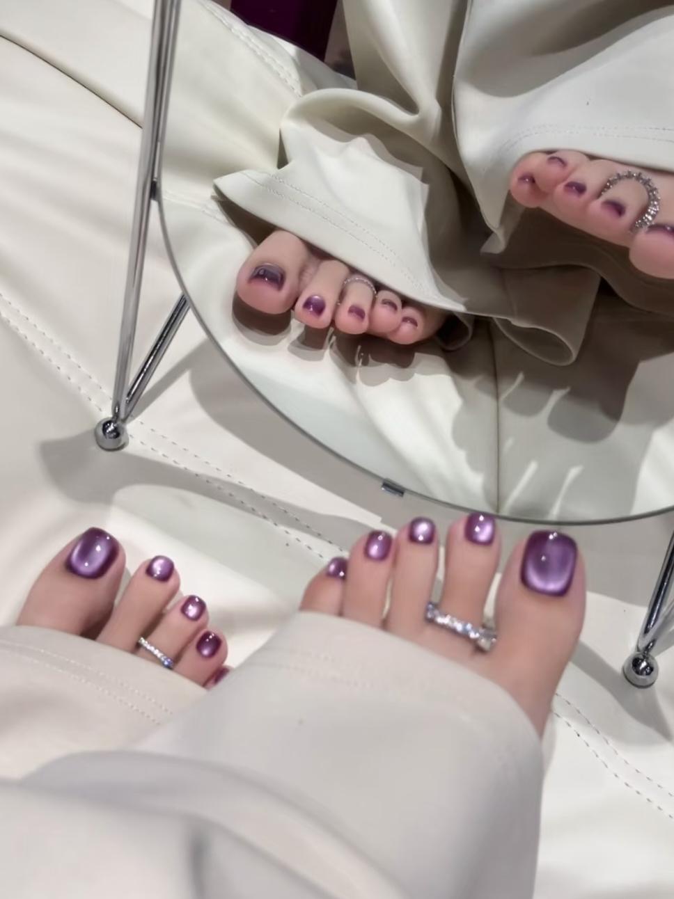 光线一晃就像真的有猫咪瞳孔在闪烁,低调的细闪+通透的紫调,显白到像自带反光板。脚趾间的银色戒指小心机,瞬间拉满精致感~ 搭配浅色系鞋子或凉鞋,温柔又高级 小众不撞款|黄皮友好! 谁能拒绝这种灵动又神秘的光泽呢~创意美甲款式推荐 做美甲打卡 什么样的美甲最耐看 秀出你的美甲作品吧 创意美甲分享 酷女孩风美甲 。 撞色/跳色美甲 晒美甲作品 现在流行什么美甲 美甲护理分享 大家见过最好看的美甲是怎样的 中国浓艳美甲