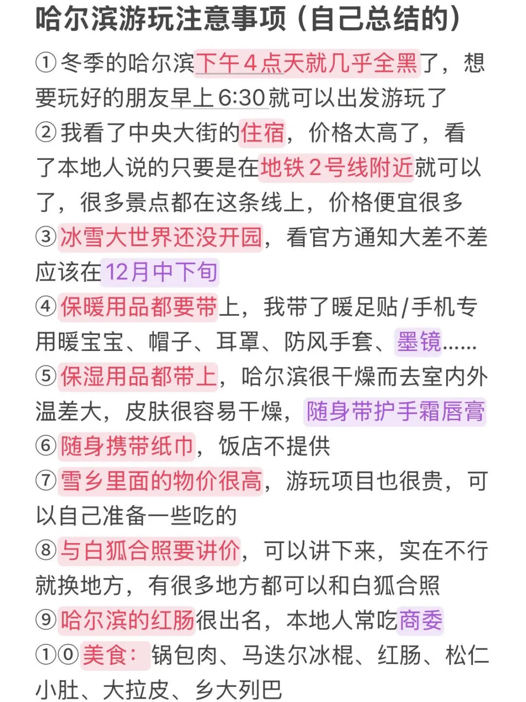 为了去哈尔滨,看了几天的相关信息,终于总结出来了我的这份自用攻略 有出行哈尔滨的朋友可以参考一下 另外有没有本地人安利一下美食了🥹 网上的太多了,怕踩雷😭
