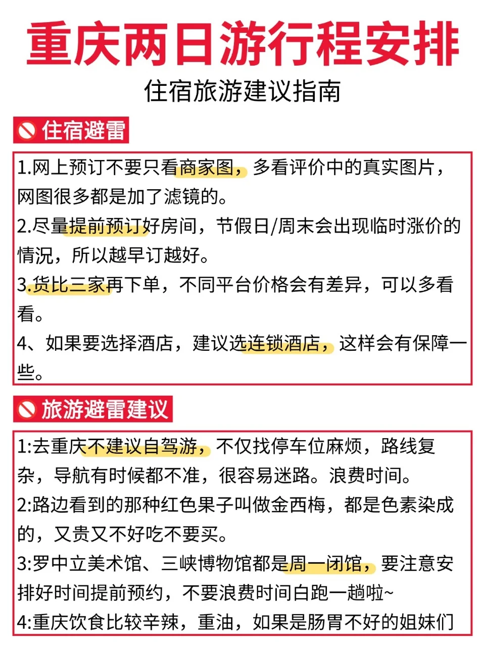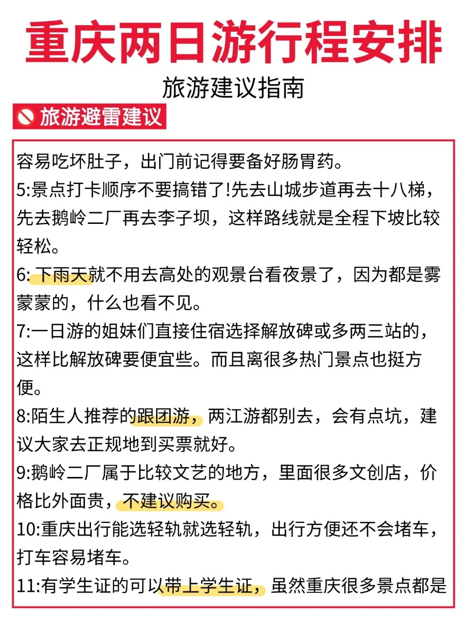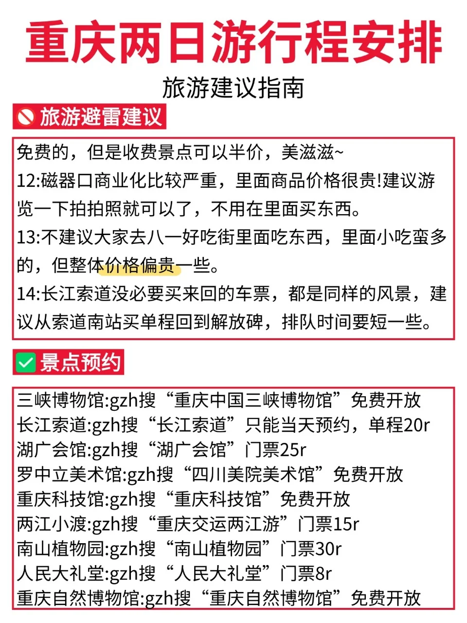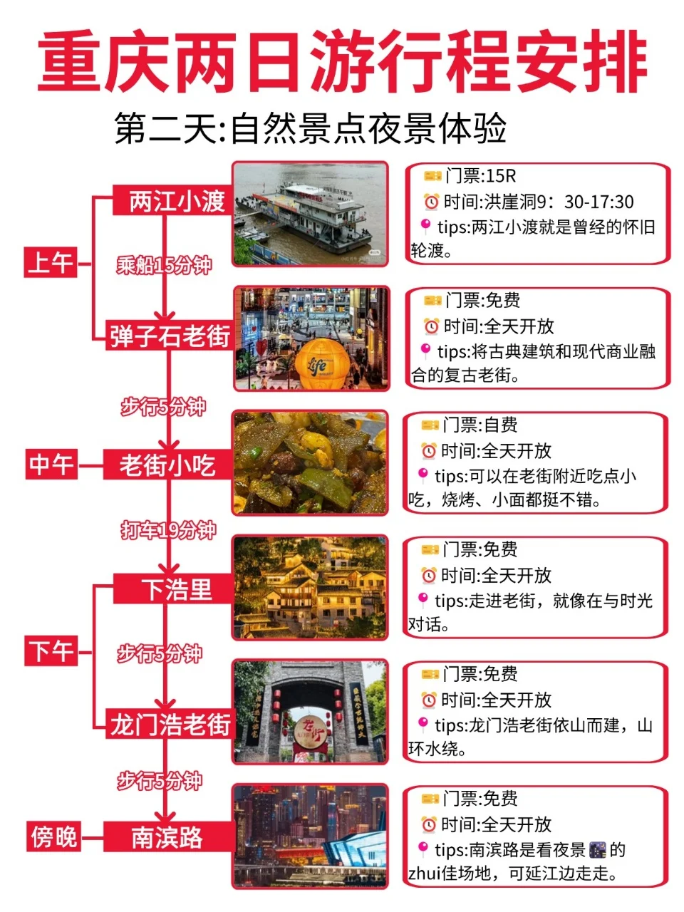 想去重庆,但是又只有两天时间的uu们,看过来咯👀!今天来为各位uu们分享一篇重庆两日游,都是本人亲测的! 既能游玩到热门景区🔥又能感受重庆的氛围🎇还能吃到各种重庆地道的美食😋真心推荐!