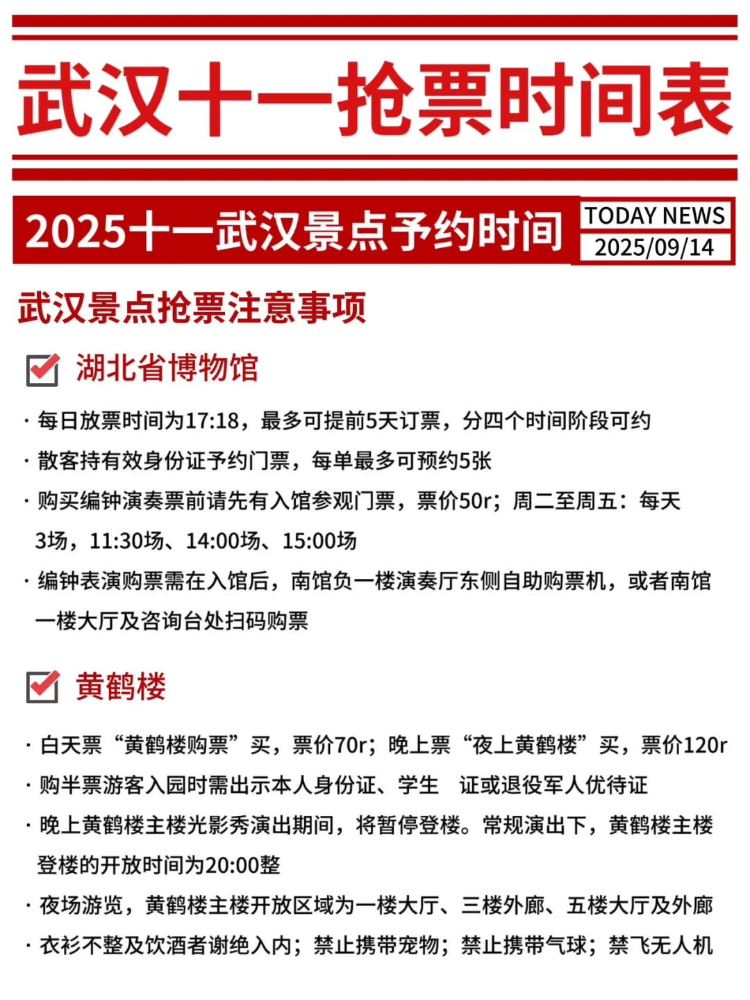 十一假期将至,武汉作为热门旅游城市,各大景点到时候肯定很多人🫨抢票难度也就增加❗️这份抢票攻略请查收,助大家顺利打卡心仪景点~💗