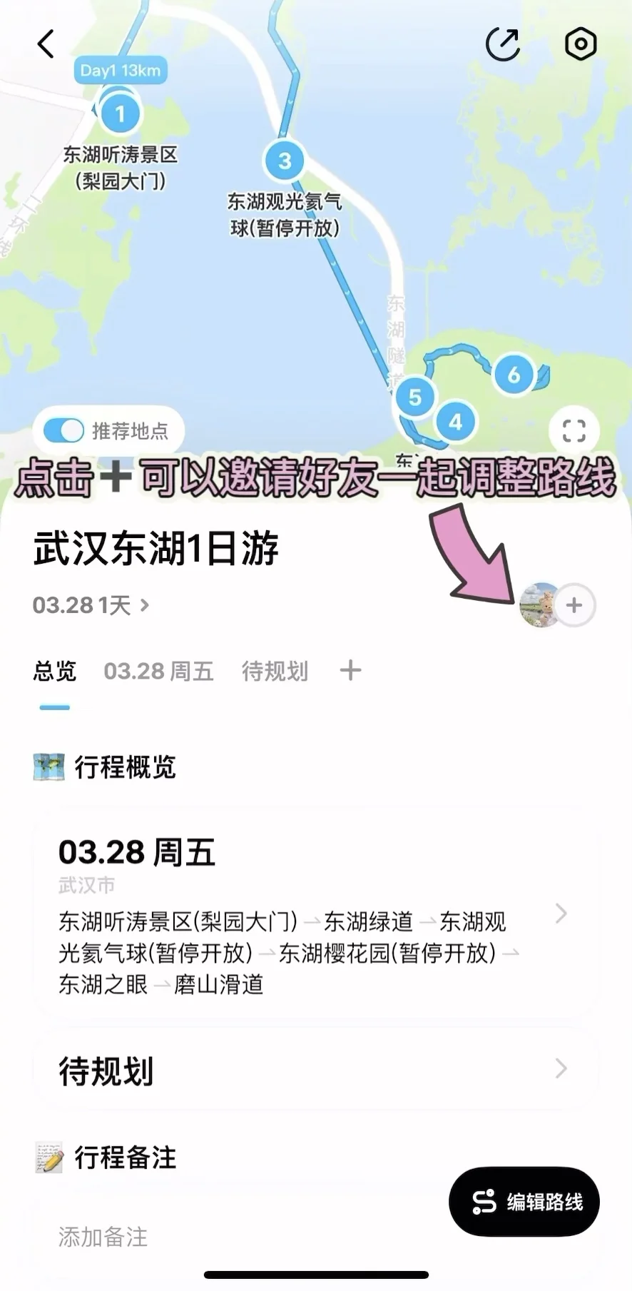 📝建议大家🉑用圆周旅迹来规划东湖一日游的路线