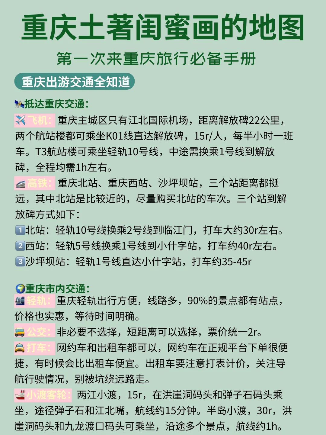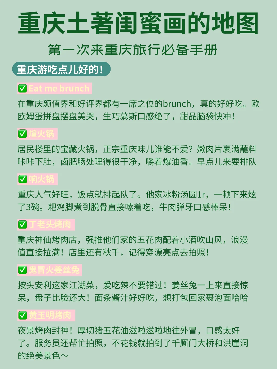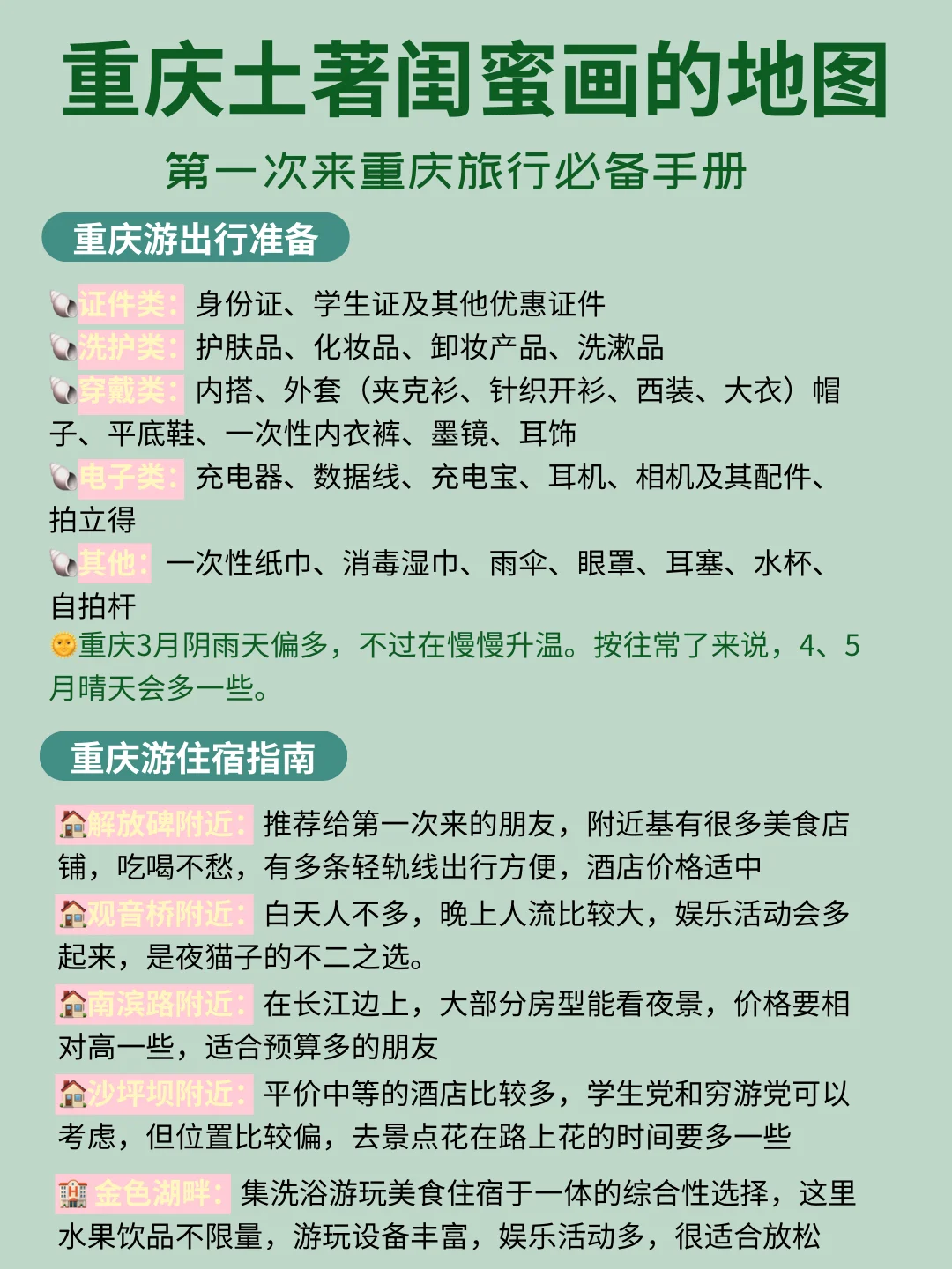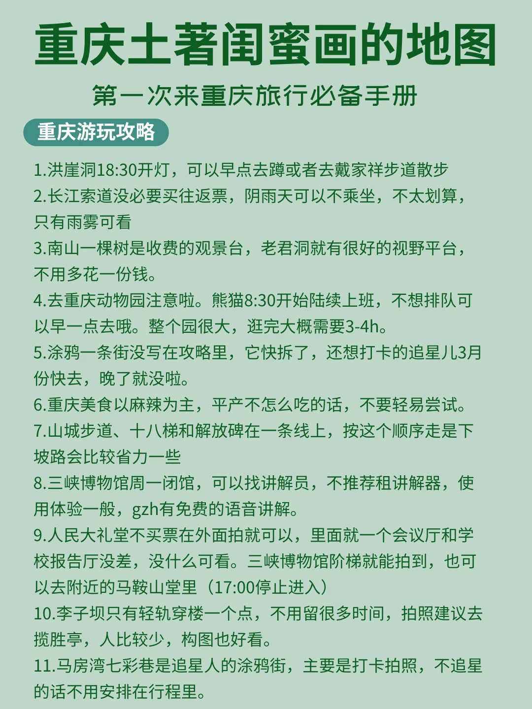听我说要去重庆玩,重庆好闺闺超贴心🤟立马出了一份攻略,不愧是J人,真是让人惊呆了🤯这也太全面了✅