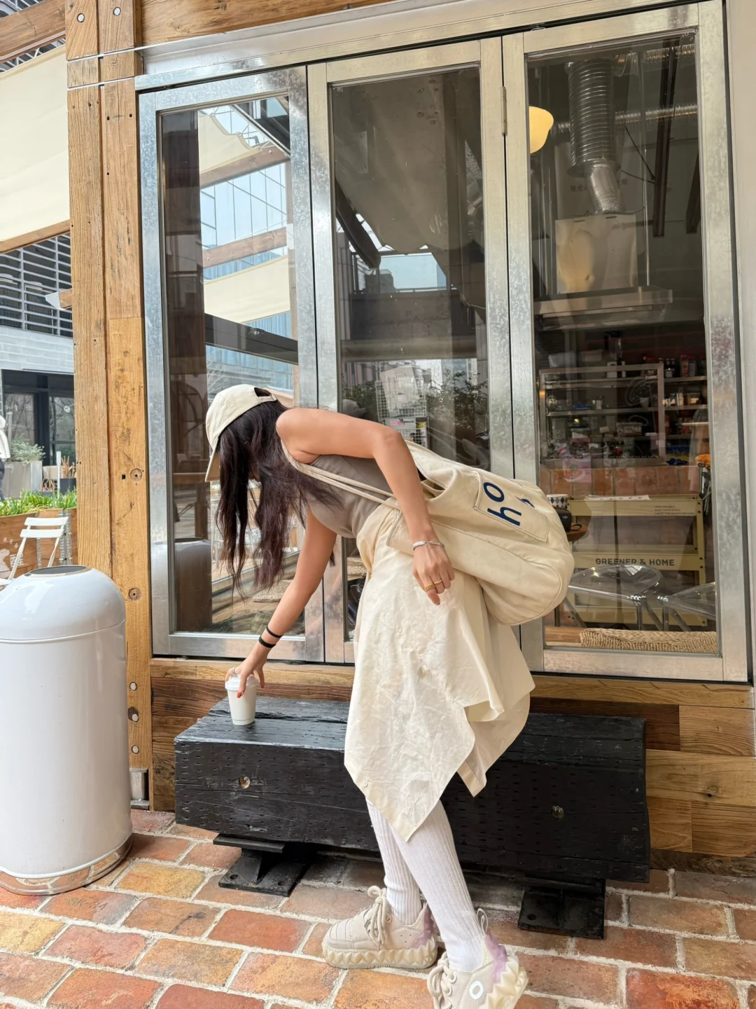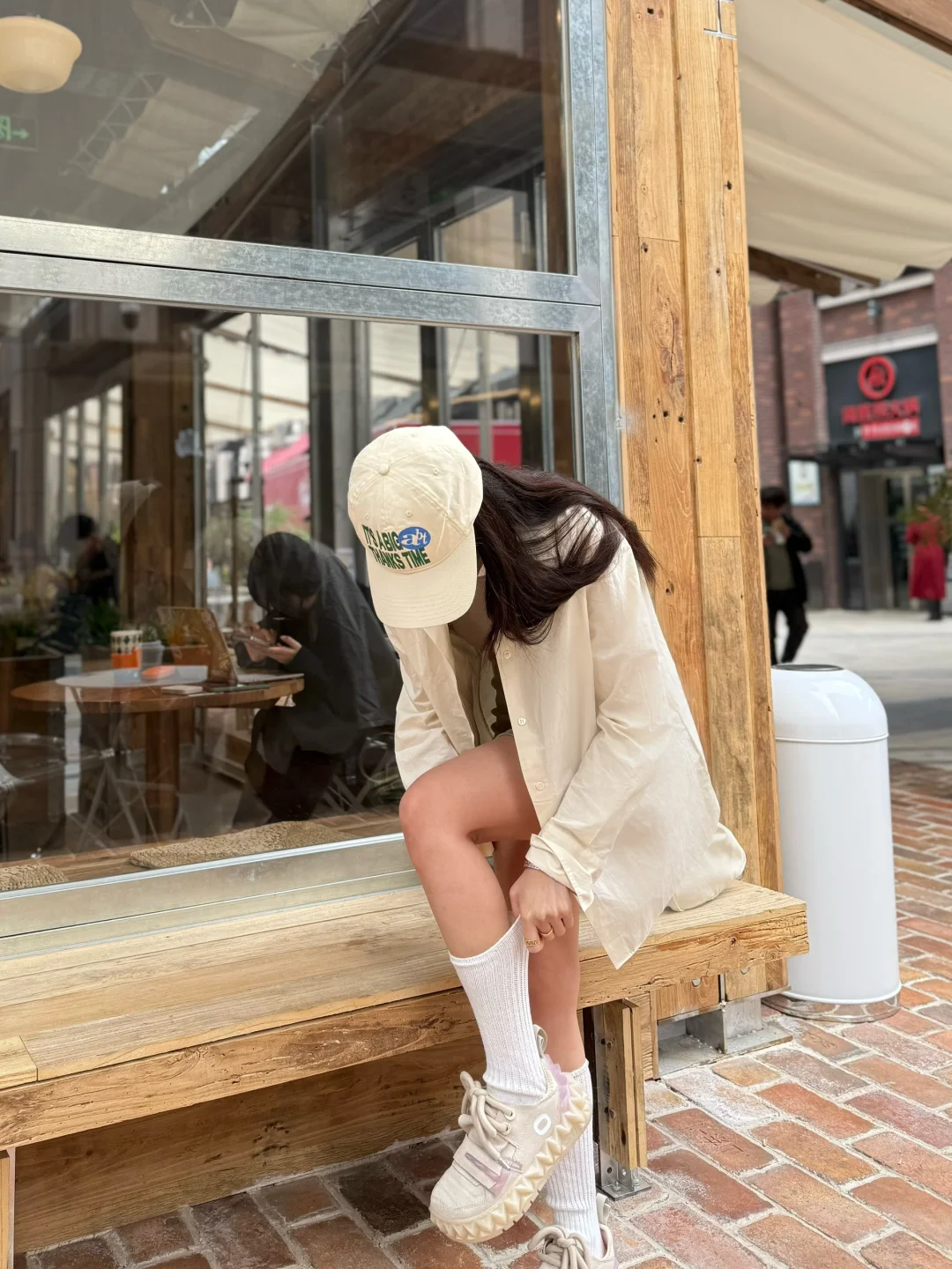 淡黄色衬衫搭浅咖运动裙 开始期待初夏到来ing