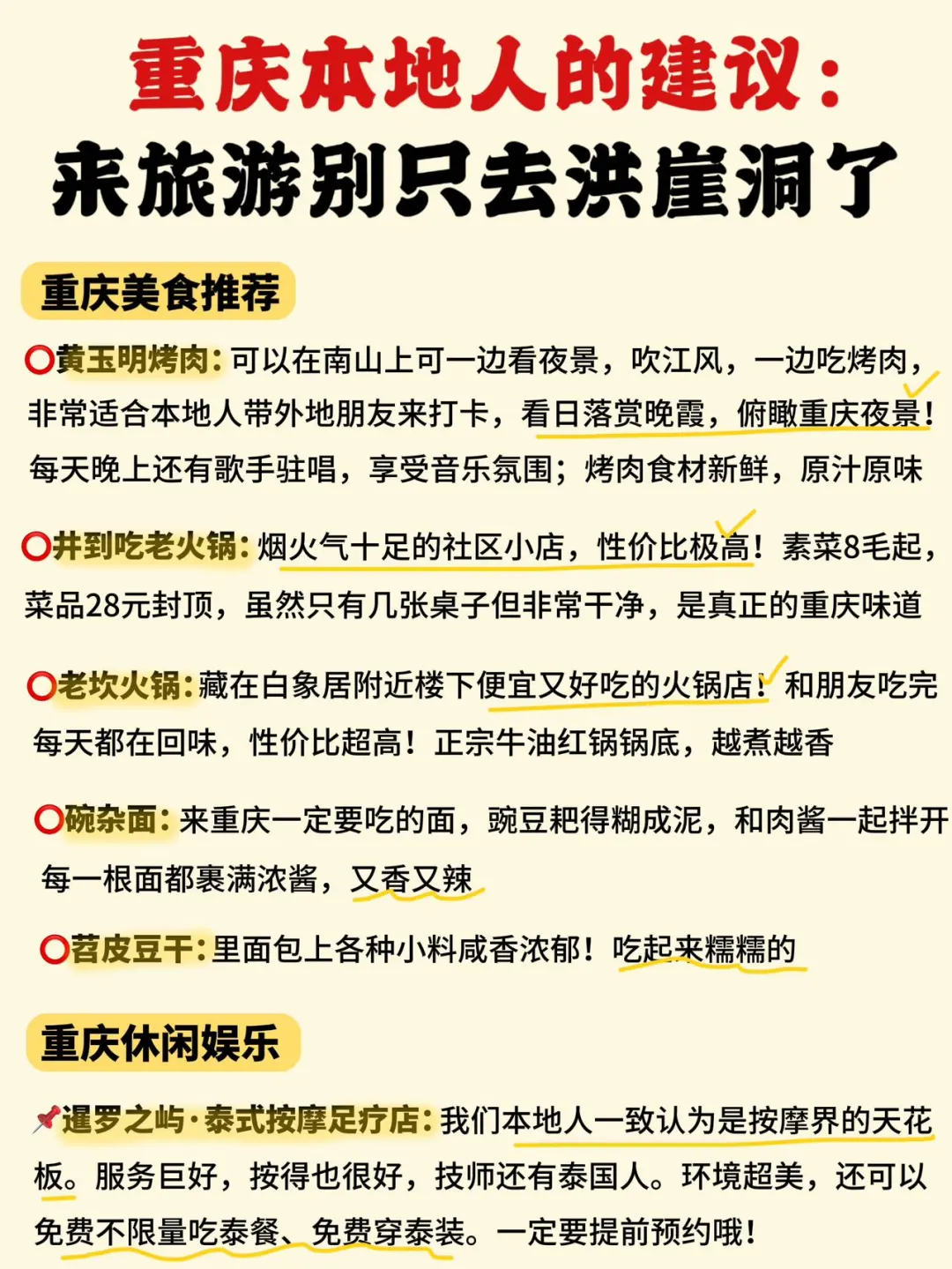 假期来临!准备来重庆旅游的宝子,刷到这篇可要好好看看哦🥳本土著熬夜整理的旅游攻略,能帮到一个是一个❗️