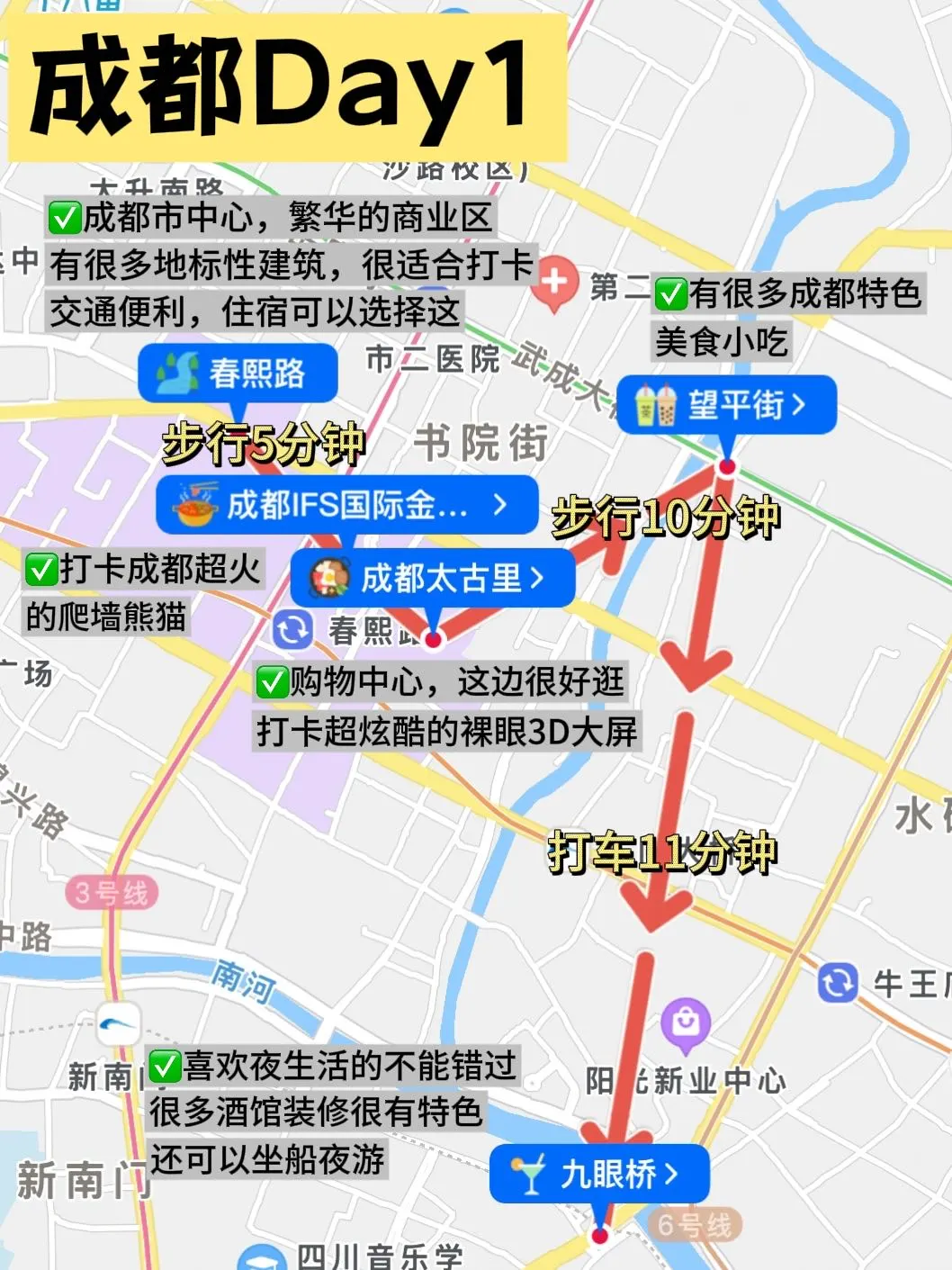3️⃣共享单车:成都的共享单车数量很多,近距离可以骑共享单车,非常方便