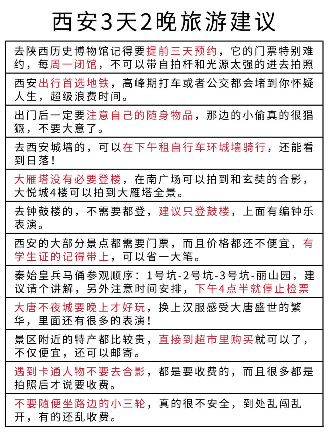 国庆即将去西安的姐妹‼️做好攻略再去,不然到了真的很像无头苍蝇,不知道怎么玩,这里也把我们之前去过西安旅游后的路线和经验总结出来了,大家🉑参考一下