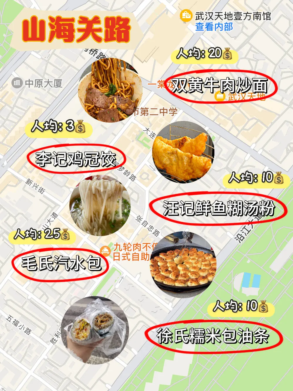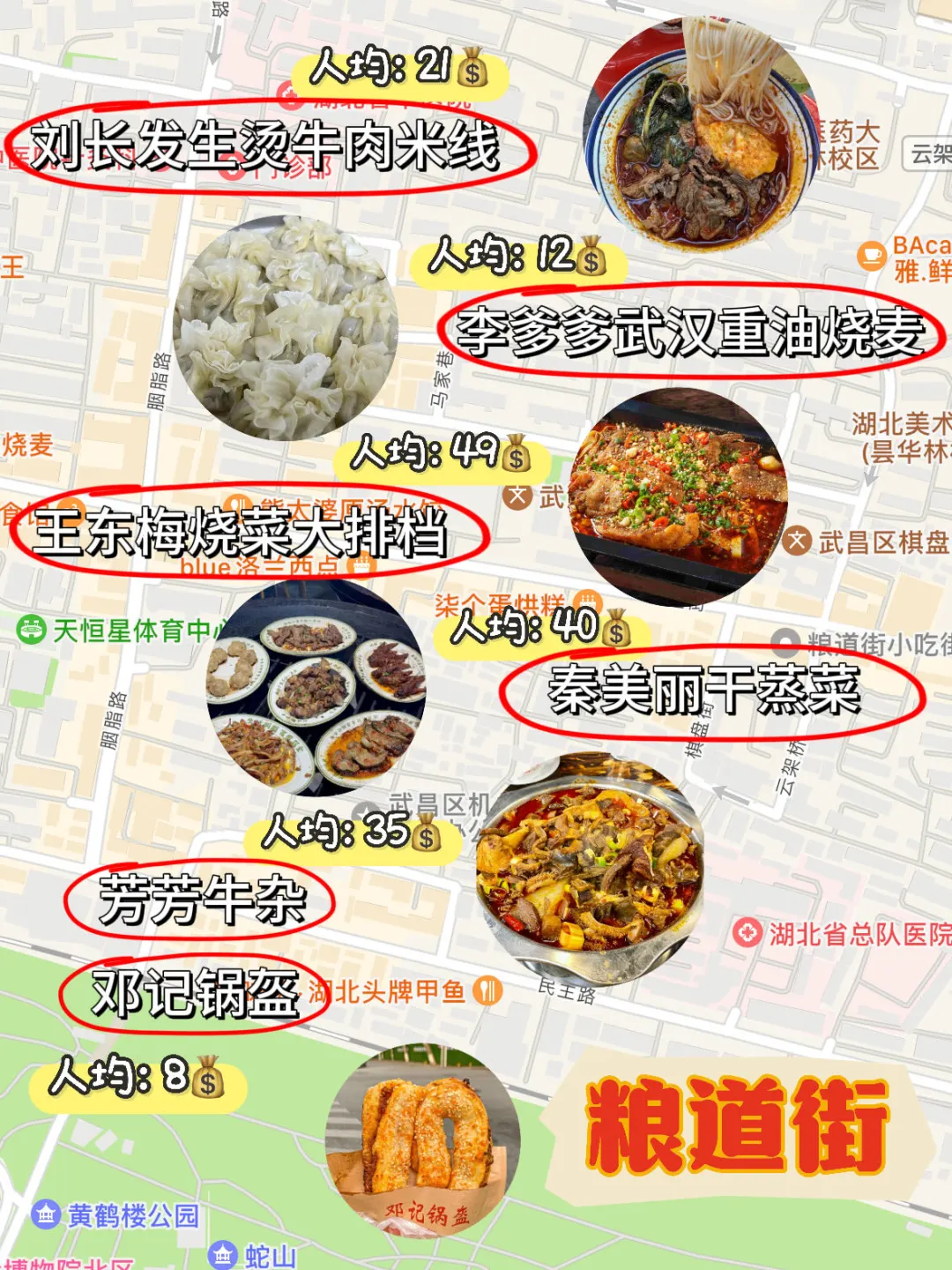🔹刘长发生烫牛肉米线🔹李爹爹武汉重油烧麦🔹王东梅烧菜大排档🔹 秦美丽干蒸菜🔹芳芳牛杂🔹邓氏锅盔