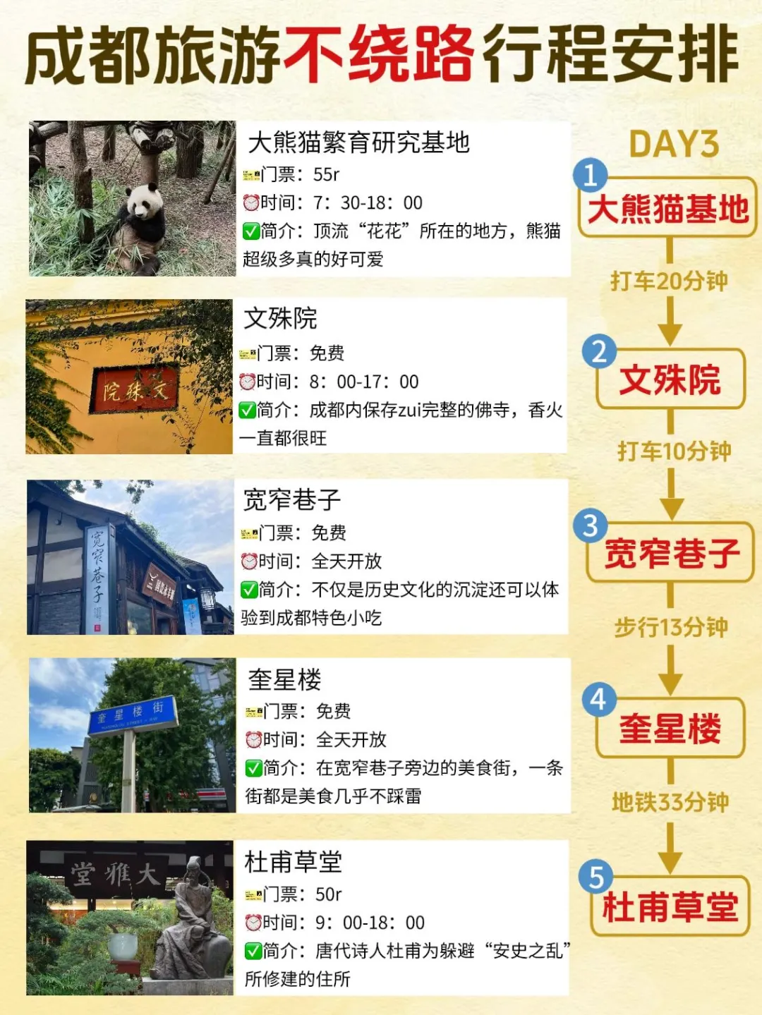 3️⃣DAY3:大熊猫繁育基地→文殊院→宽窄巷子→奎星楼→杜甫草堂