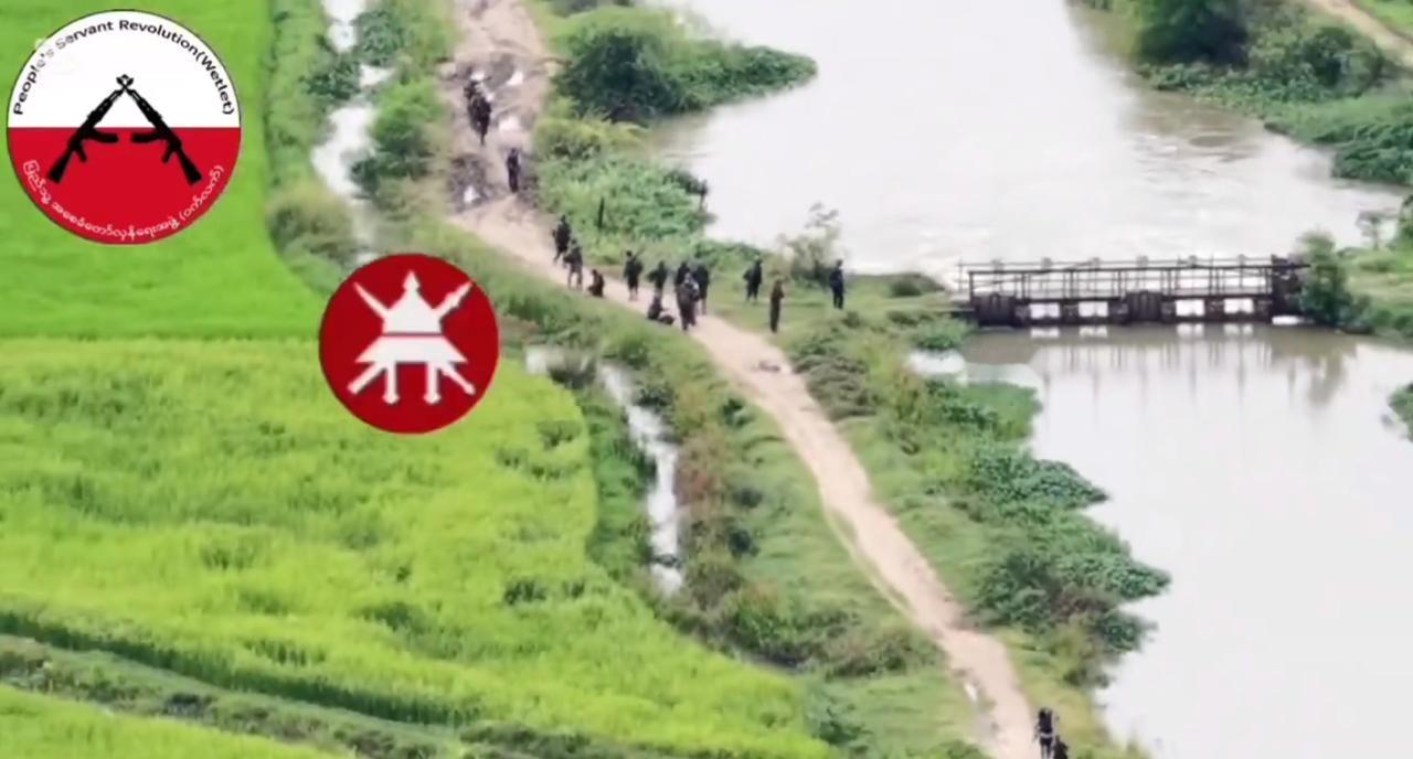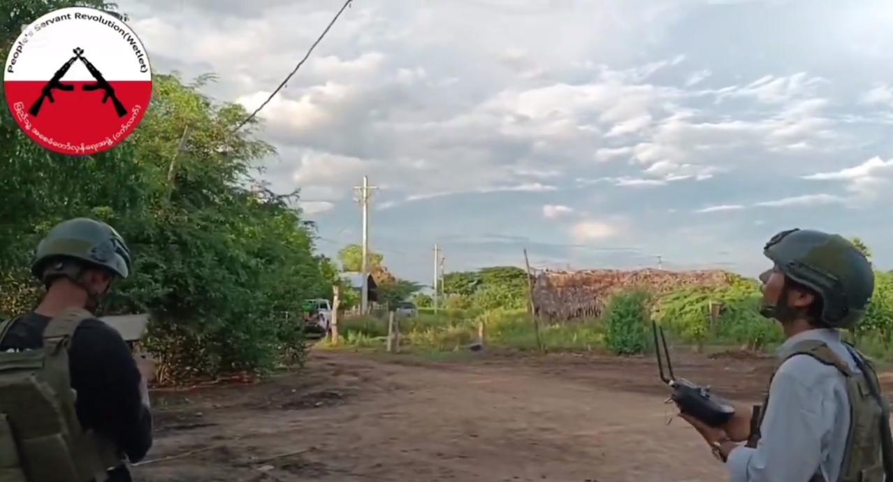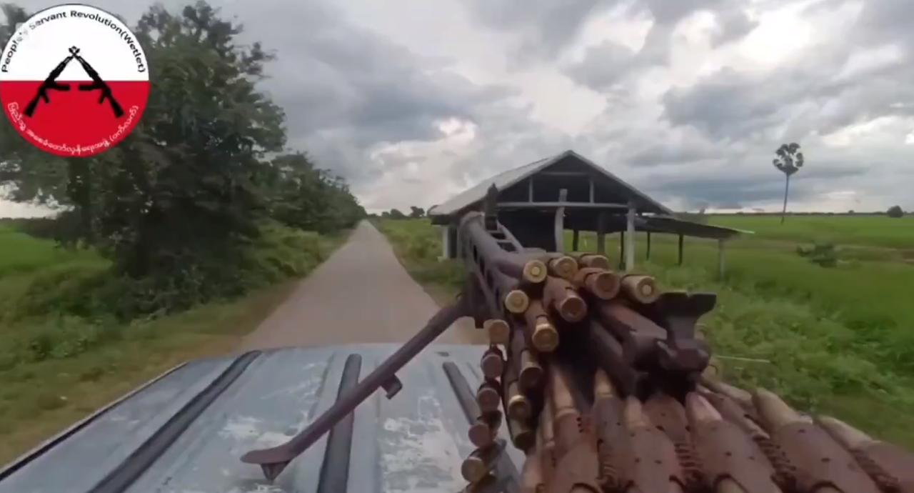 2025年11月9日缅甸人民国防军在实皆省威莱镇对军政府军队发动的伏击。伏击中使用了无人机投放的PVC炸弹和机枪,当地报道称,自11月5日以来,军政府军队一直在撤退,村庄也被焚毁,这印证了此次伏击。 随附的视频展示了无人机航拍的军政府军队车队、道路和运河上的爆炸以及爆炸后的士兵伤亡情况,展现了缅甸人民国防军在长达四年的内战中,战术上向低成本、简易无人机作战的转变。 视频中出现的MA-15(巴基斯坦MG3的改进型)式机枪,凸显了抵抗力量通过小型武器的依赖,这使得他们能够在军政府面临物资短缺的情况下,持续开展游击战。