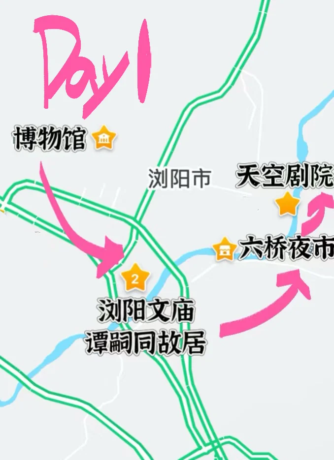 博物馆——浏阳文庙——谭嗣同故居——六桥夜市——天空剧场