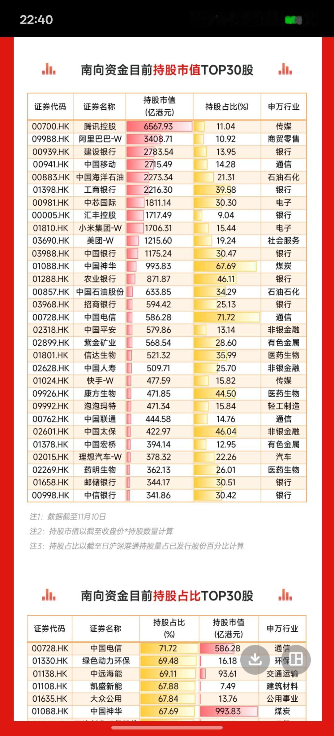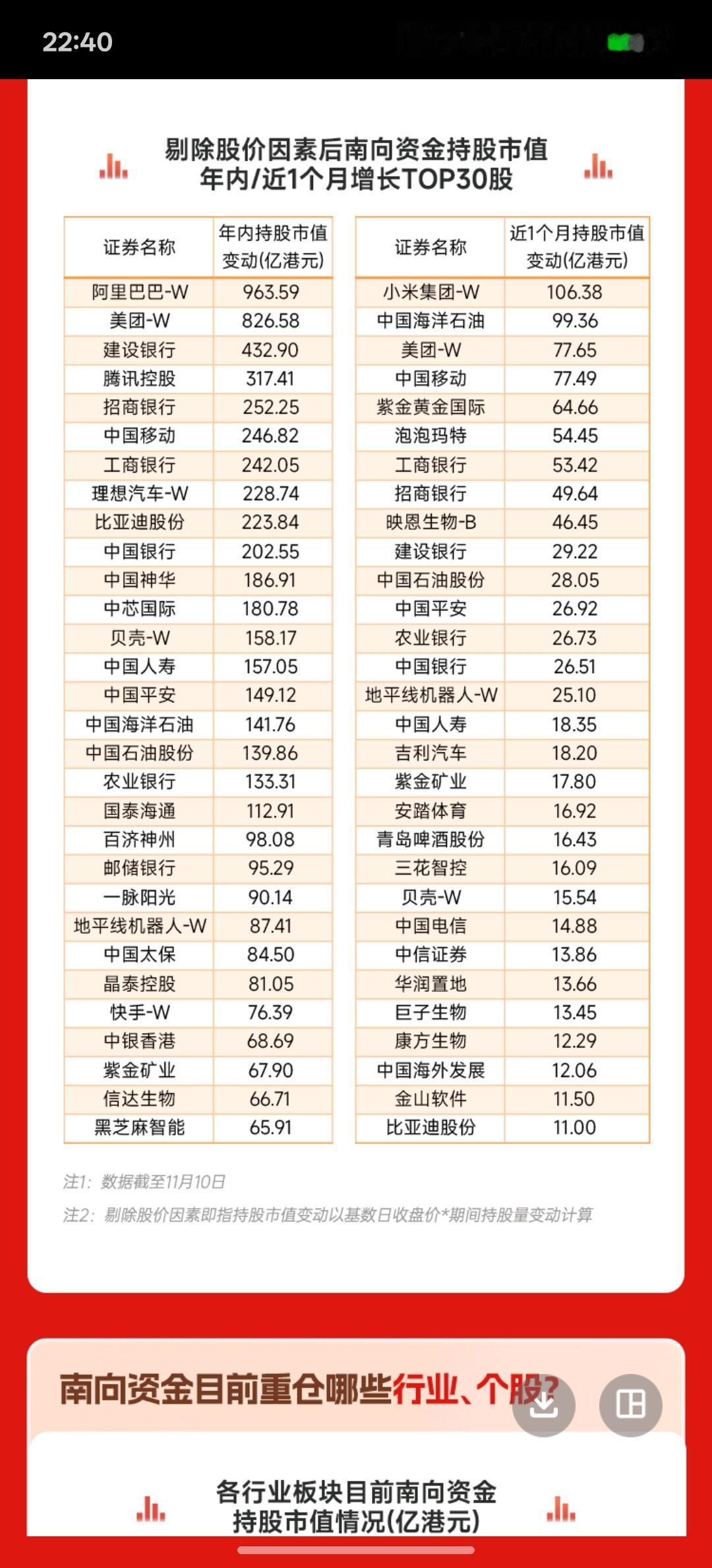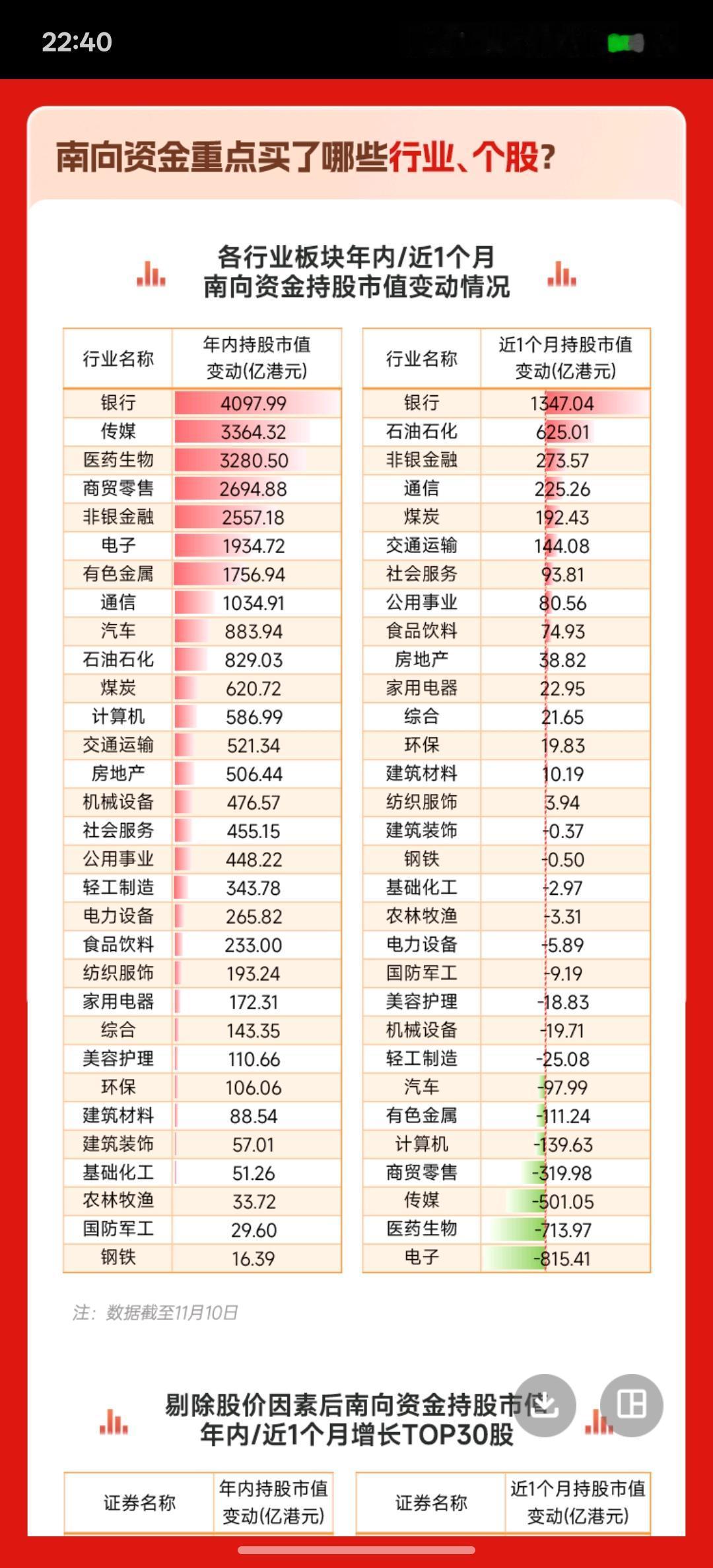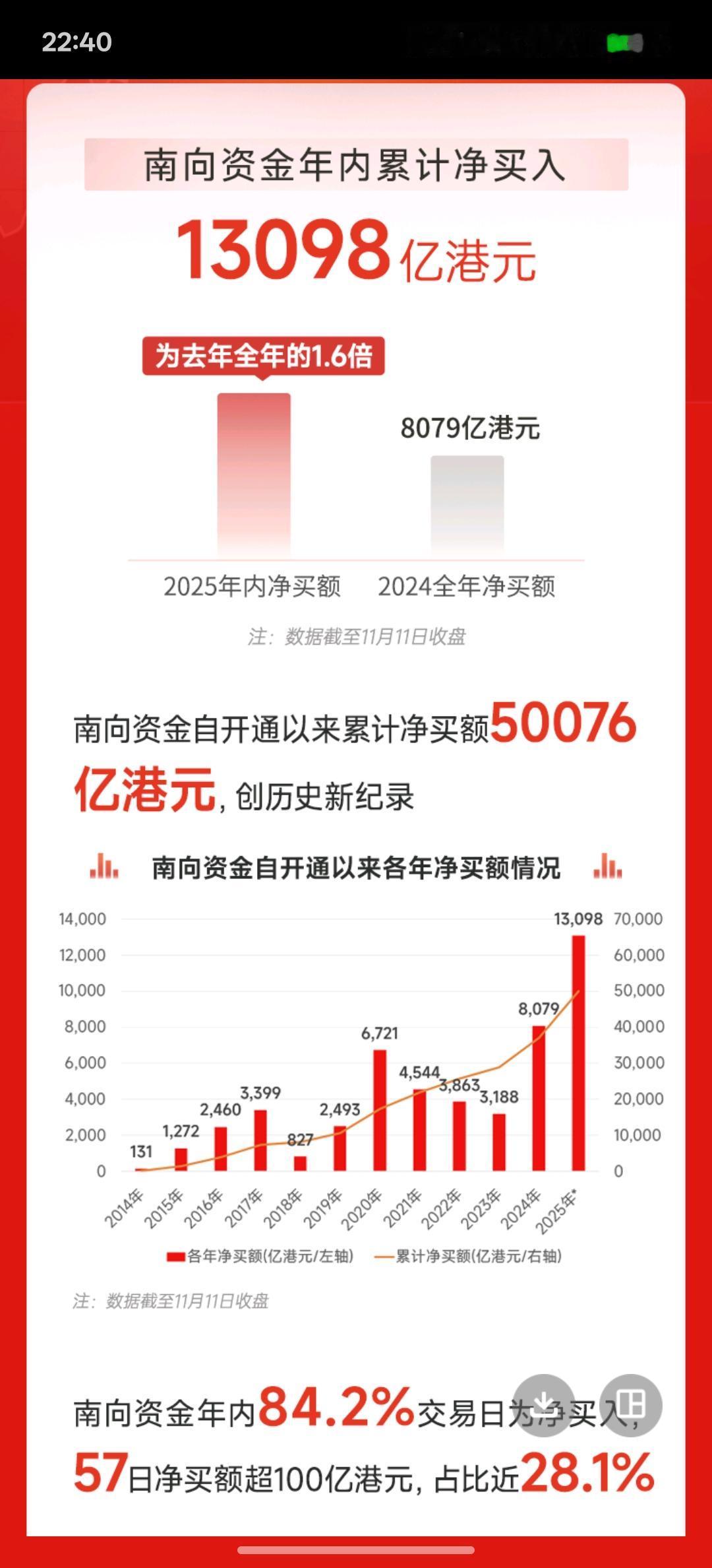 南向资金:累计净买额历史性突破5万亿!年内加仓规模已达去年1.6倍,而且今年外资买港股买了1.3万亿,外真的是大手笔,也持续的买入港股的资产!啊,外资同样也在买入A股市场的资产,今年包括高盛,摩根大通,摩根士利丹,包括韩国的投资者,阿根廷的投资者都在买中国的资产!之前贝莱德还骂骂咧咧的离开了中国A股市场,那后来中国资产价格不断的上涨,贝莱德也持续的在买入中国资产,根据之前的相关信息公布,贝莱特买银行股买到6%以上的持仓比例!所以今年以来,外资确实是真金白银,在买中国的资产主要还是看好中国资产未来的成长性以及科技创新带来的科技红利分享,同时也是中国资本市场的改革带来的资产价格估值的上涨。那外资现在买港股买的行业还是比较多。芯片半导体呀,人工智能行业,医药行业,水电也就是能源行业,包括传媒,汽车行业,我行保险都是外资比较喜欢看好的行业! 啊,今年外资持续买入,明年外资可能还会继续加码,毕竟外资也在今年的研报当中,也是持续看好中国明年股市的上涨。