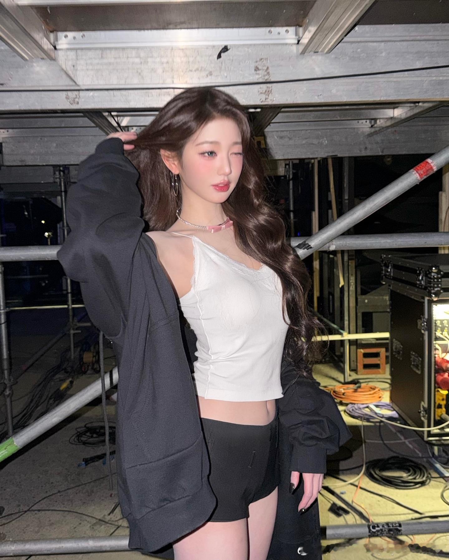 刘亦菲这条裤子挺养生,毕竟降温了肚脐眼必须护住啊