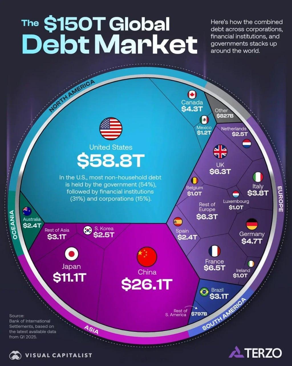 债务是货币化的另一面——法定货币是基于债务义务创造出来的。一个经济体规模越大、货币化程度越高,支撑它所需的债务就越多。关键问题在于:这是一种什么样的经济体?在生产性经济体中,债务会推动增长和提升效率,并且随着生产的扩张,债务会得到偿还或再融资。而在投机性经济体中,债务会催生金融泡沫,泡沫最终会破裂,进而抹去债务,同时也会吞噬小股东的储蓄。所以,美国政府背负的无法平衡的巨额债务一旦失去买单者,美国的未来将会是什么样的灾难?它除了发动一场世界规模的战争,还能有什么办法?