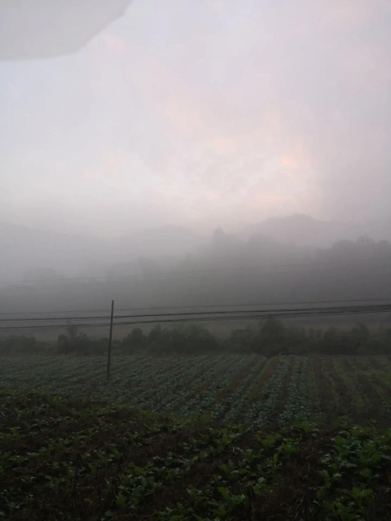 中江县冯店农村,早晨的雾很大的,太阳从东方升起的一刹那之间,天空和大地变得如此的