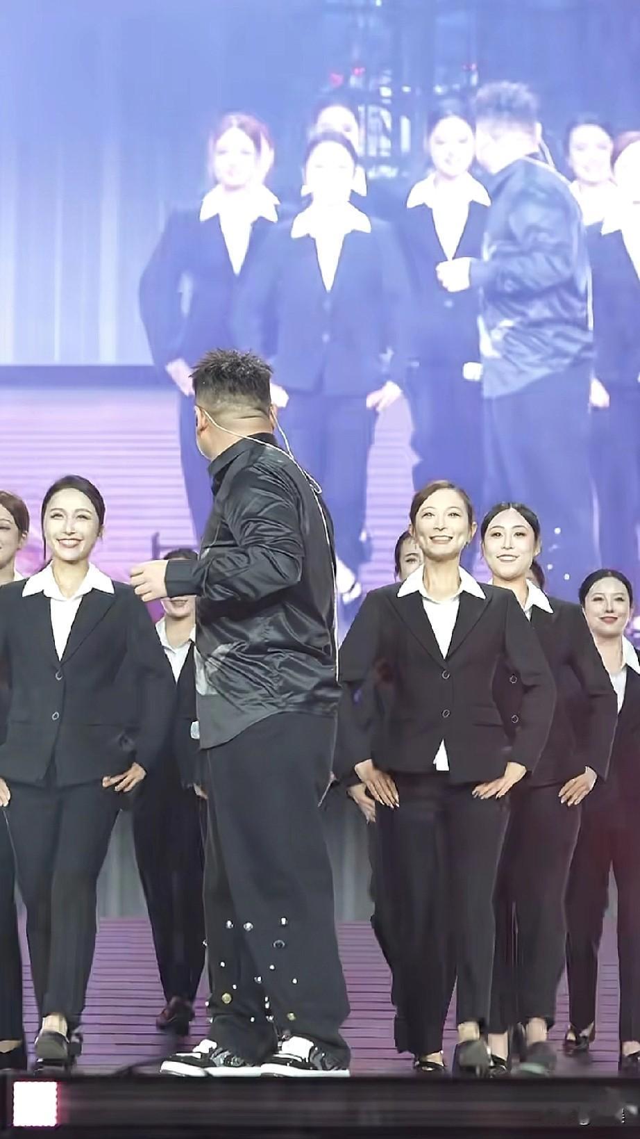 岳云鹏演唱会上,被穿黑西装白衬衫的伴舞围绕岳云鹏巡演