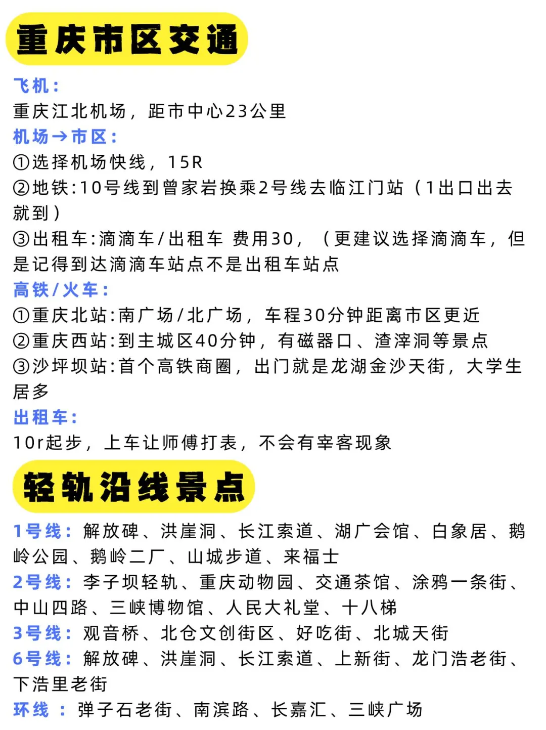 🚆高铁/火车站:重庆北站、重庆西站、沙坪坝站都可以到达