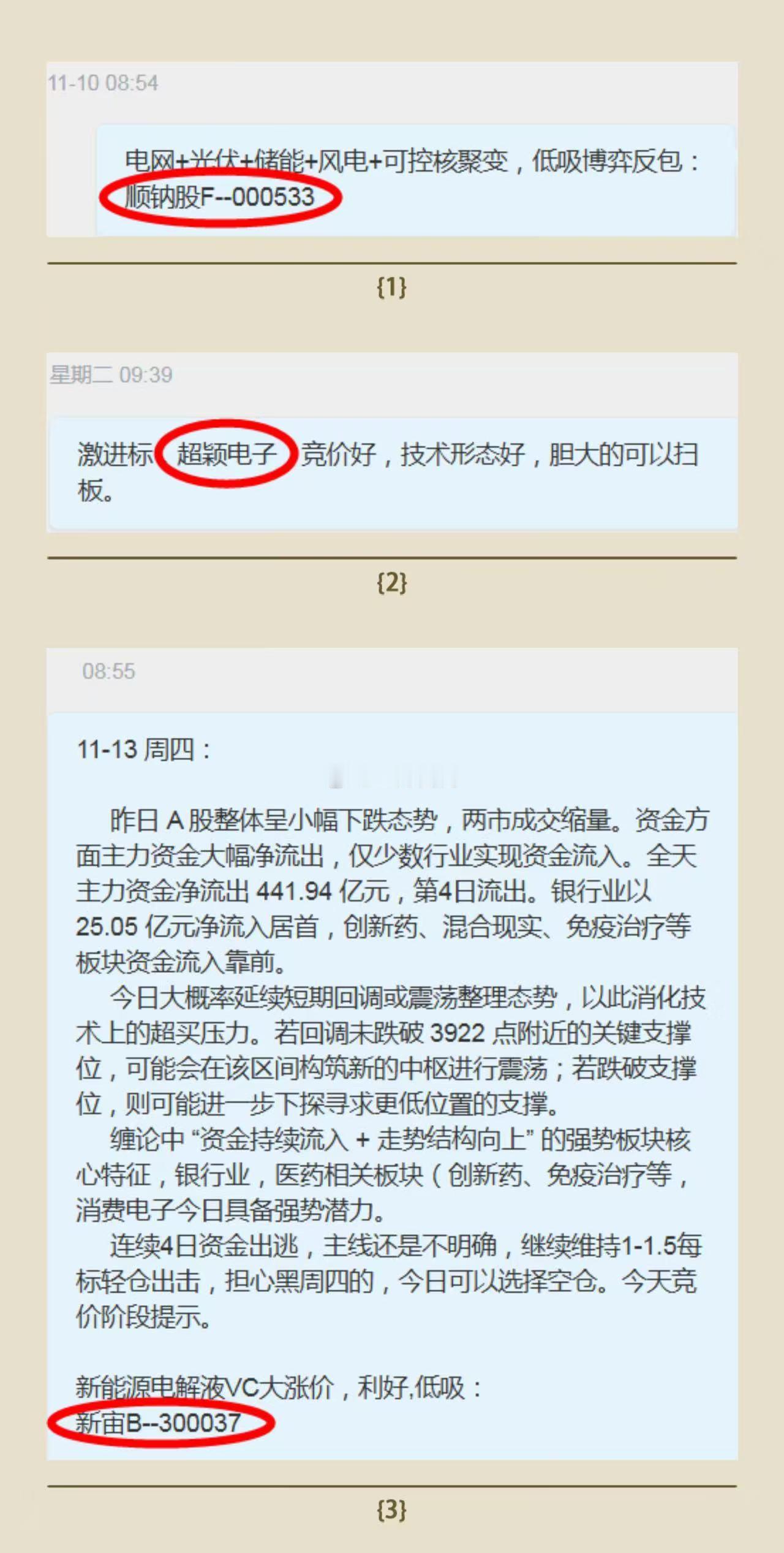 三股齐飞,三只牛板了两只,早盘强势上攻!11.10日 $顺钠股份 sz000533$ 早盘强势封板!11.11日 $超颖电子 sh603175$ 早盘快速封板!11.13日 $新宙邦 sz300037$ 早盘大涨16%!早盘表现强势,三股齐升,市场人气进一步激活,后市表现仍可期待。