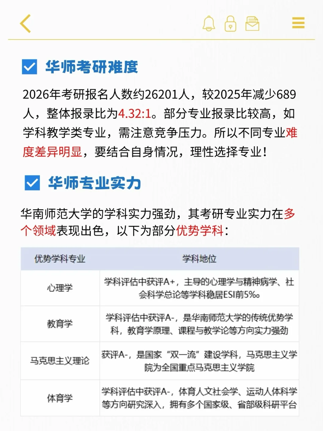 2026年考研报名人数约26201人,较2025年减少689人,整体报录比为4.32:1。部分专业报录比较高,如学科教学类专业,需注意竞争压力~