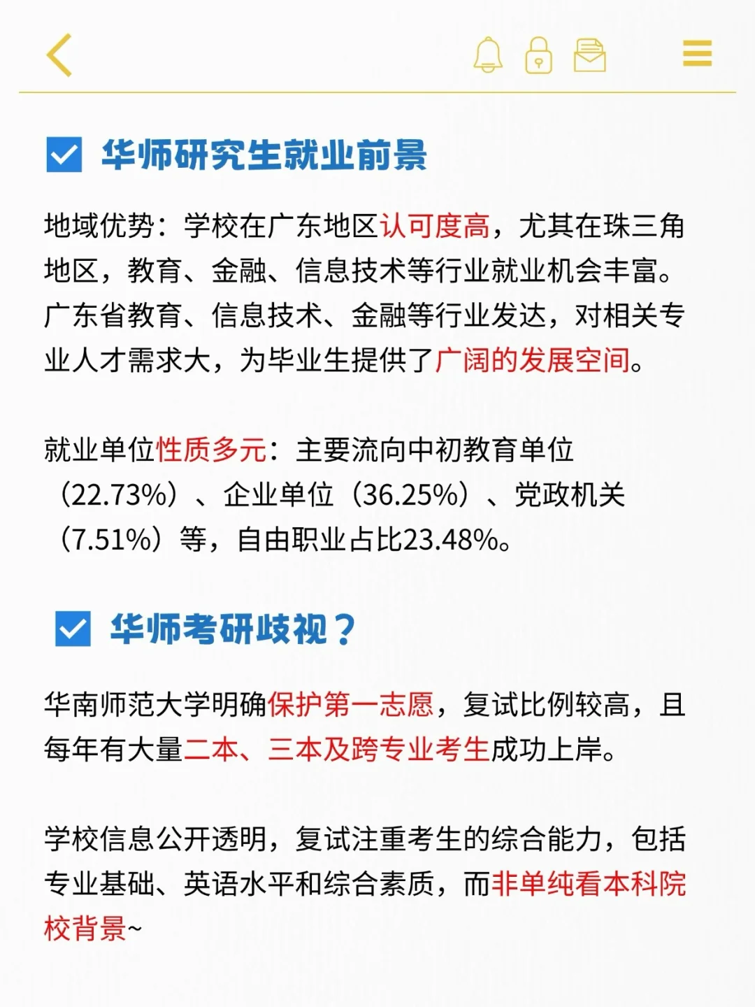 华南师范大学明确保护第一志愿,复试比例较高,且每年有大量二本、三本及跨专业考生成功上岸!