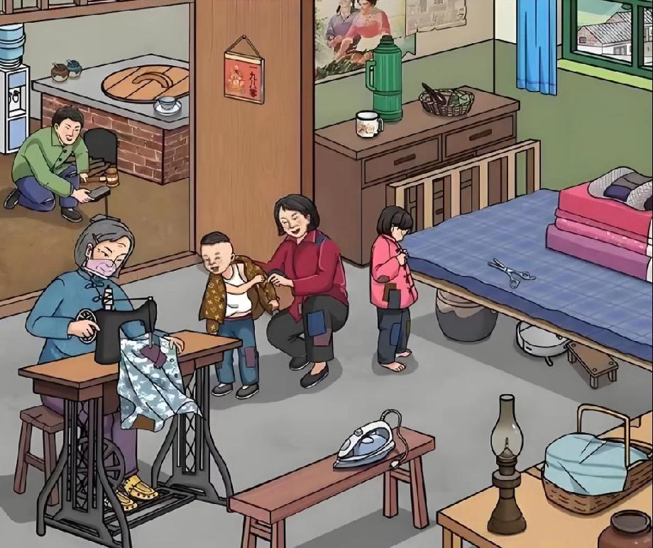 这老房子里藏了至少5个时代细节!我先看到了缝纫机,你发现了啥?
