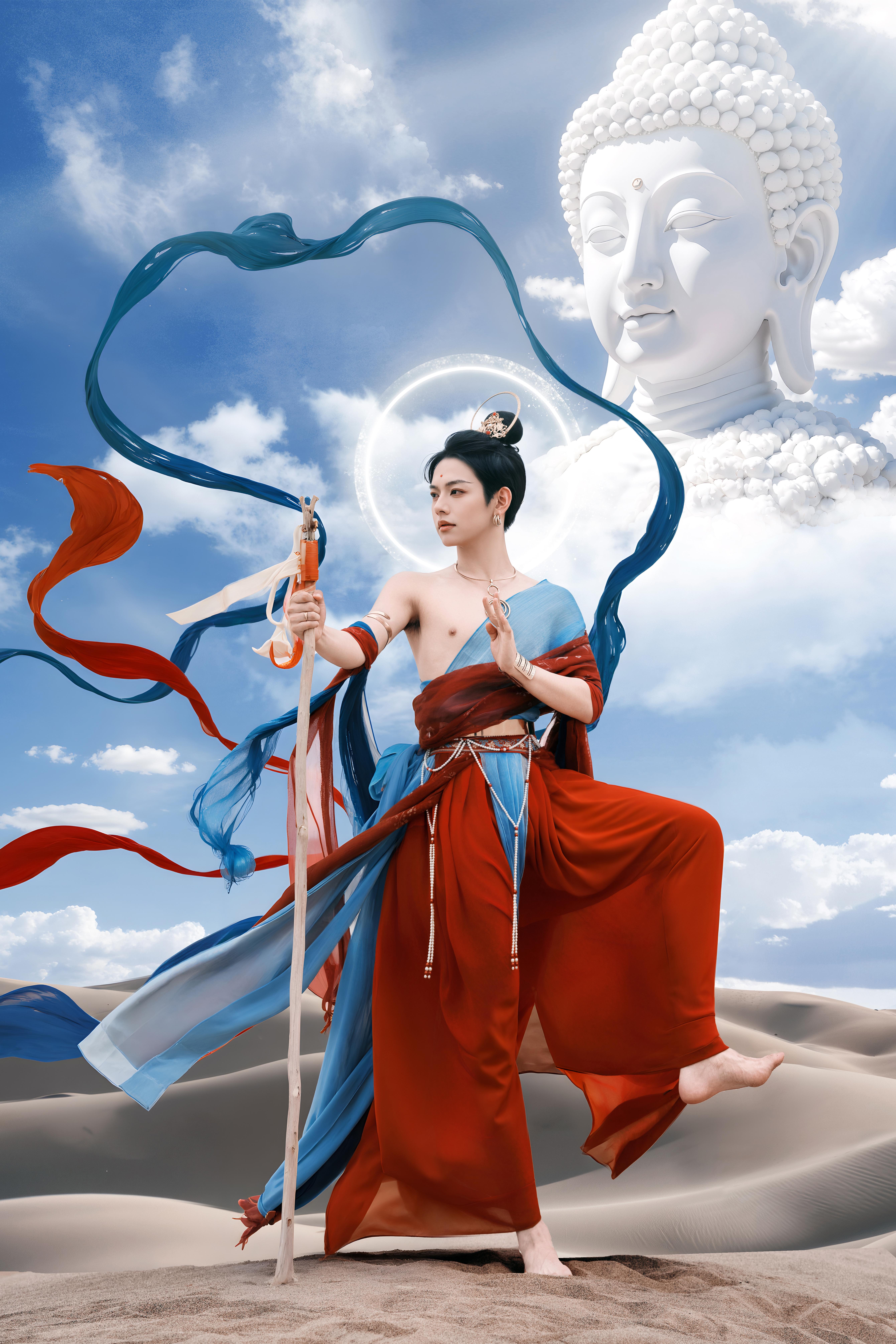 惊❗男士也能演绎敦煌飞天之美,绝绝子❗。