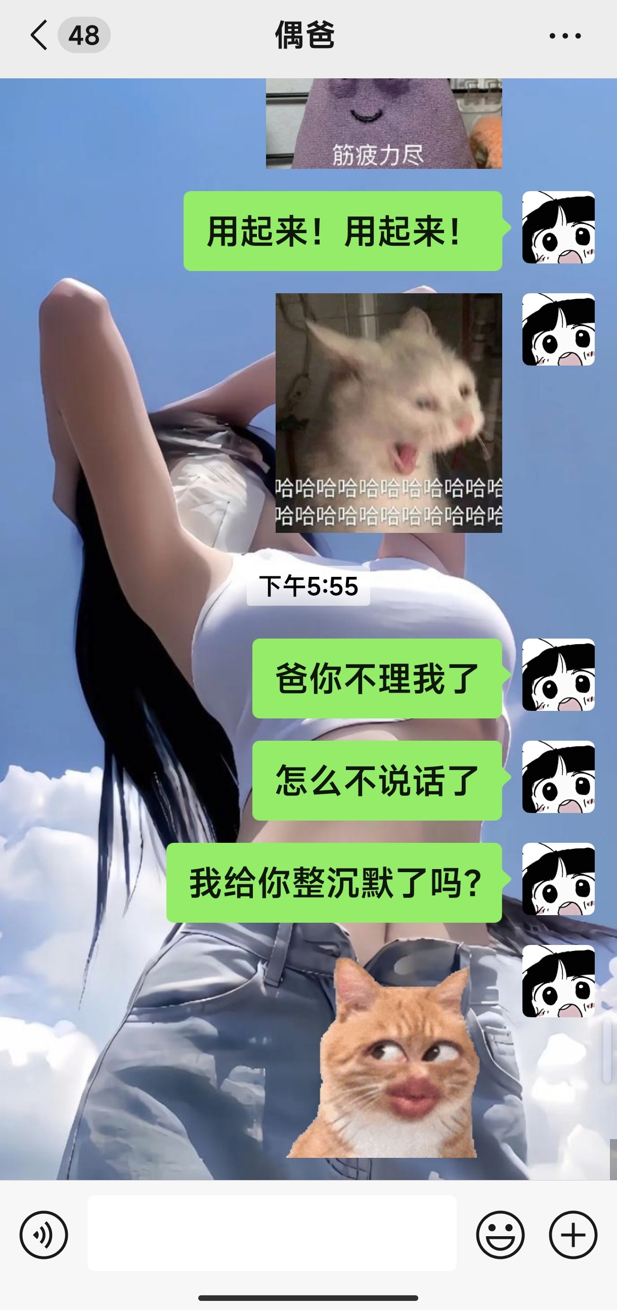 爸你不理我了,怎么不说话了,我给你整沉默了吗?