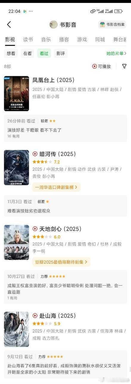 投稿:iejj已经给凤凰台上打一星了,除此之外她们也给暗河传、水龙吟、唐诡、山河枕,玉骨遥,射雕打了一星! 啥毛病,上一部剧打一个一星?