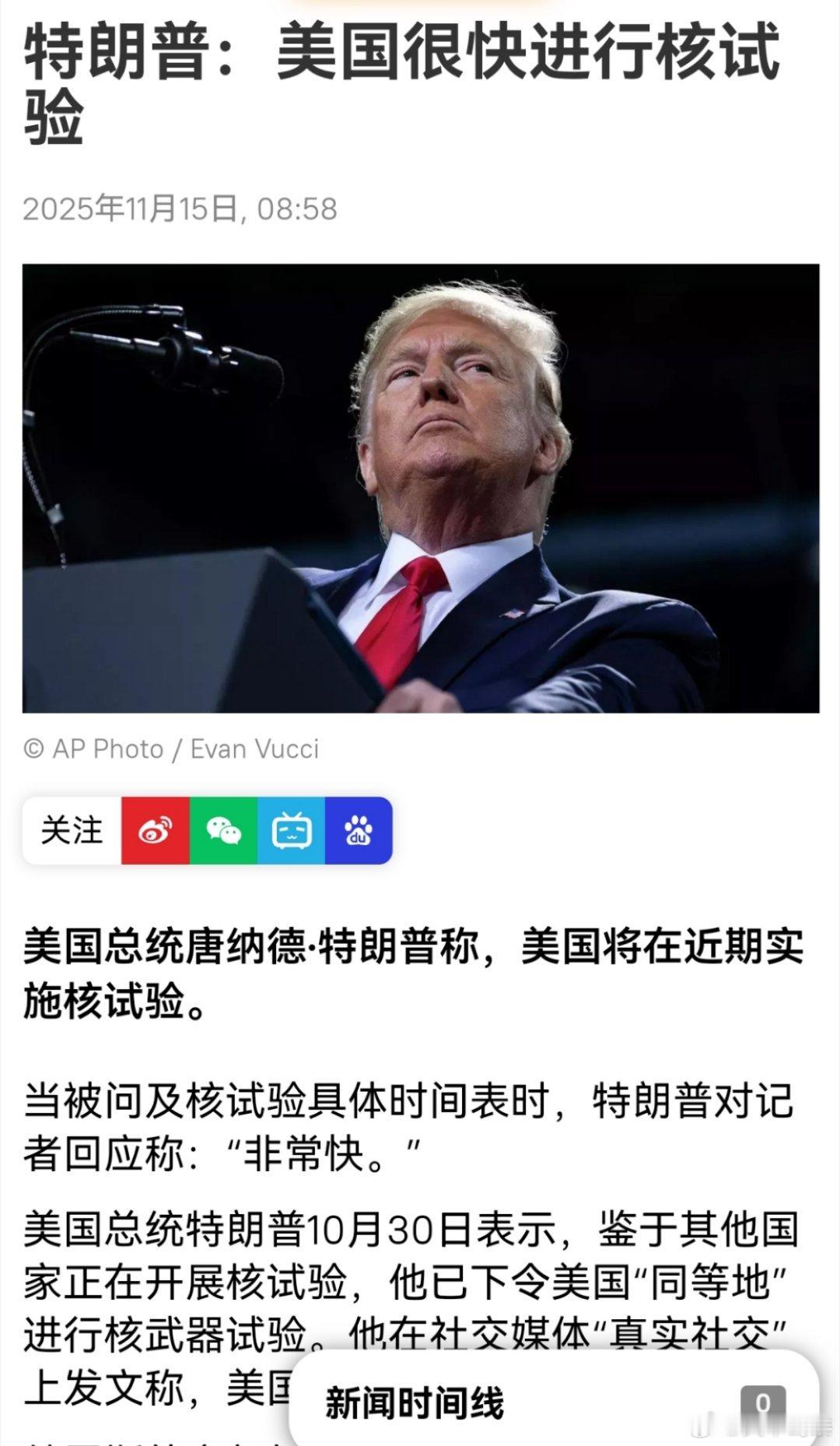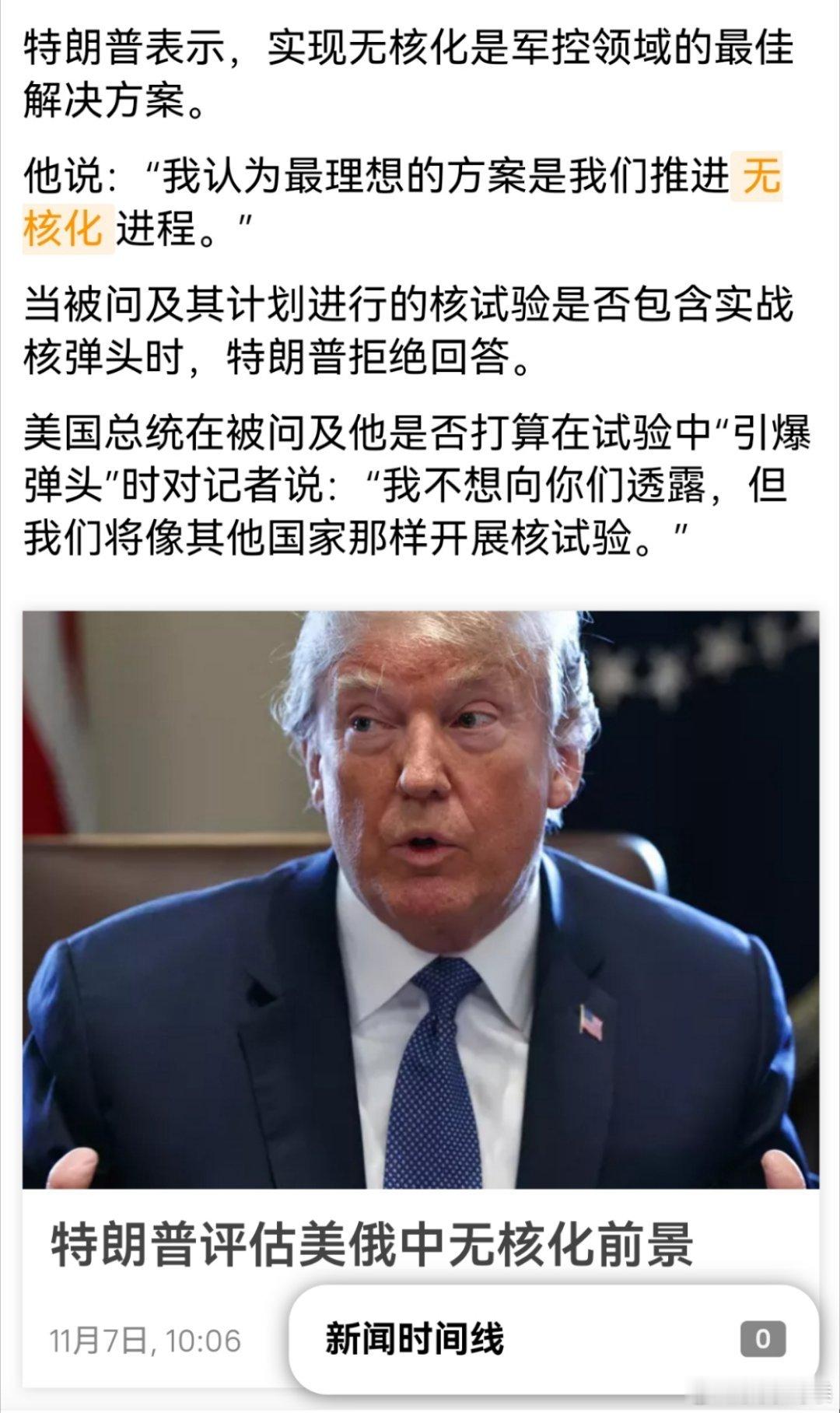 特朗普:要搞无核化军控。特朗普:我要搞核试验。微评:无耻之尤!