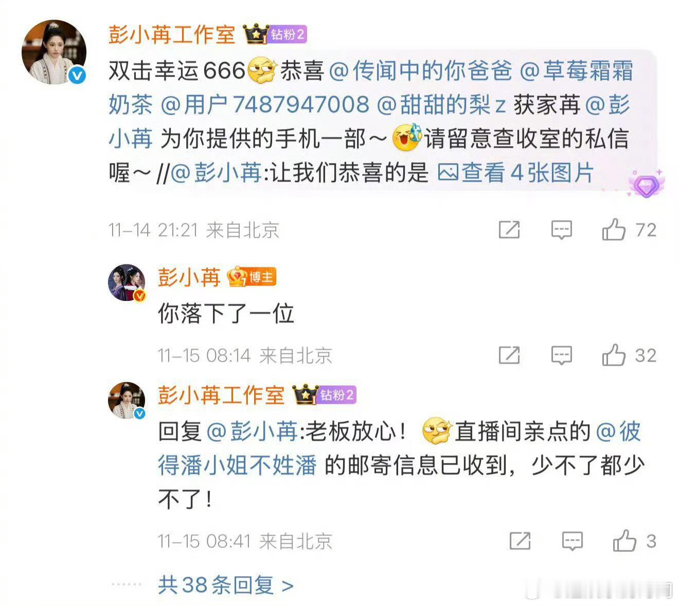 谁被彭小苒的真诚狠狠打动了?亲自公布获奖名单的操作太圈粉,不敷衍不走过场,把粉丝当朋友对待,这样的内娱活人偶像真的越了解越爱!