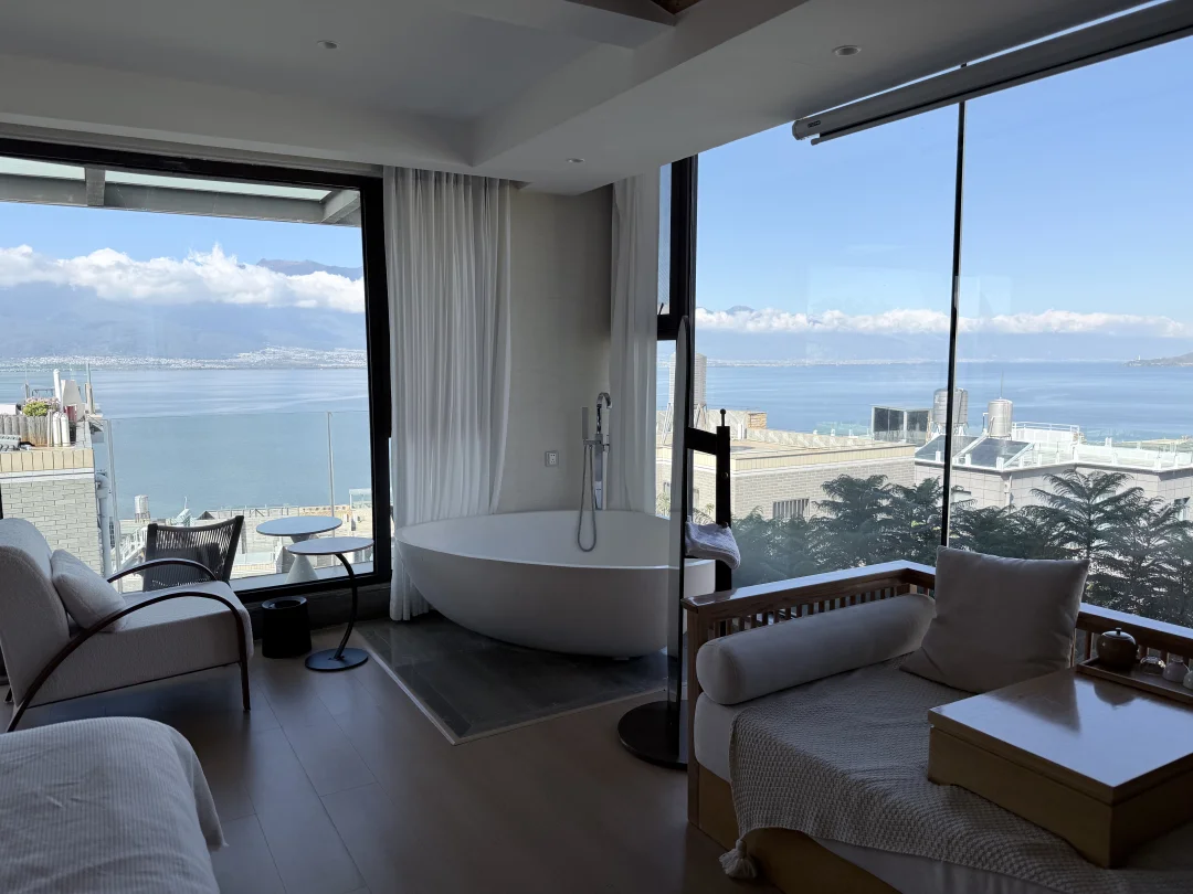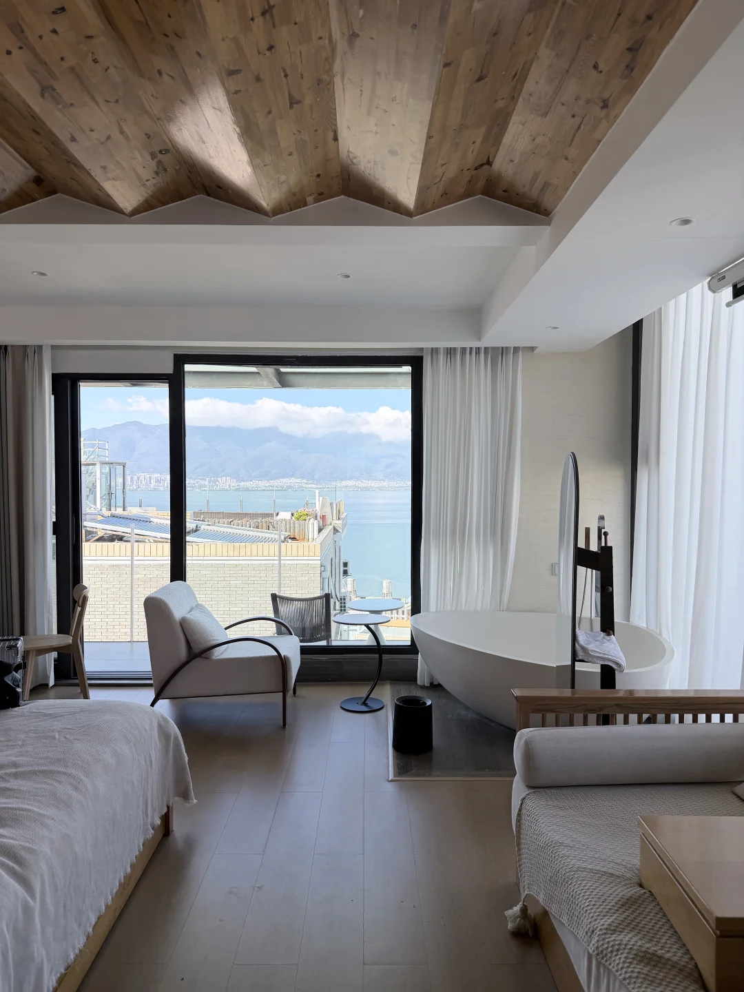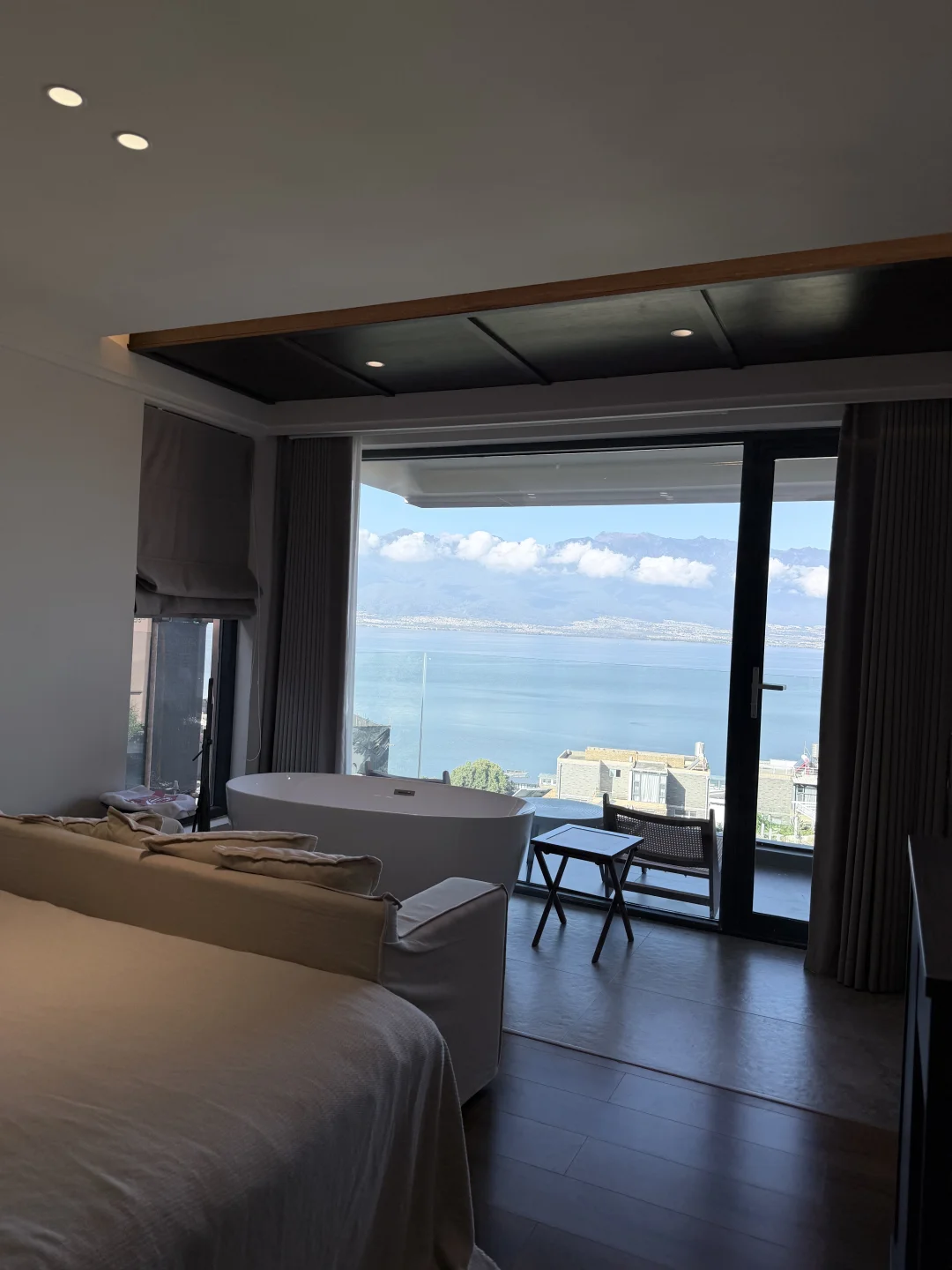 先去大理看看洱海渔灯代替 来云南大理下飞机打卡的第一家酒店 坐落在机场附近✈️10分钟的位置 交通便利,位于别墅区域 还提供接送服务🚗 酒店门头特别好看浪漫💕 到店服务也很周到 有两个帅气小哥哥checkin和帮忙抬行李 超级暖心🥰 到店有下午茶点心 小蛋糕搭配饼干很美味,芒果香甜可口 房间阳台视野开阔风景很好 是观赏渔灯和洱海的好位置 床很柔软睡的舒服最喜欢沐浴露是白苔味的💓 很赞的一次入住体验✨