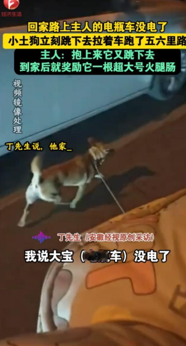 “太有灵性了!”近日,江苏邳州,一男子骑车带狗出去玩,结果回家路上没电了,他只能下车推着走,没想到,平日里懒得走路的小狗也跳下车,在前方拉着车子走,男子把狗抱回来,它又跳下去,坚决不肯上车!网友:狗只是不会说话,但它什么都懂。 事儿就发生在近日,邳州的丁先生养了一只叫 “大宝” 的中华田园犬,也就是咱们常说的土狗,别看大宝只是一只普通的本土犬,可在丁先生心里,那就是家里的宝贝,平时去哪儿只要方便,都会带着它。 不过熟悉大宝的人都知道,这小家伙可是个实打实的 “懒虫”,典型的 “能坐车绝不走路,每次丁先生骑车带它出门,它一早就扒着电瓶车的后座,稳稳当当跳上去坐好,不管丁先生怎么逗它,说让它下来溜达溜达活动活动筋骨,它都把头一扭,赖在车上不肯动,小眼神里满是 “懒得动,坐车多舒服” 的惬意,有时候甚至会把脑袋搭在车把上,眯着眼晒太阳,那小日子过得比人还舒坦。 丁先生也宠着它,知道狗狗可能是嫌走路累,也就任由它一路坐车,从不勉强,这天天气不错,丁先生想着带大宝出去透透气,找个开阔的地方让它撒撒欢,于是骑着电瓶车,载着大宝就出发了。 一人一狗玩得挺尽兴,大宝在草地上跑了几圈,追着蝴蝶打闹,丁先生看着它欢快的样子,自己也跟着开心,可没想到,玩尽兴往家走的时候,意外发生了,电瓶车突然没电了,不管丁先生怎么拧车把,车子就是纹丝不动,停在半路一动不动。 当时天色也渐渐暗了下来,周围也没什么修车铺,更没有充电的地方,丁先生没办法,只能叹口气,从车上下来推着电瓶车往家走。 让丁先生万万没想到的是,就在他弯腰推车,心里还琢磨着 “这一路六里地,推着车走回去可得累够呛” 的时候,原本稳稳坐在车上的大宝,居然 “噌” 地一下跳了下来。 丁先生一开始还以为它是想下来溜达溜达,或者是坐久了想活动活动没太在意,继续埋头推车,可下一秒,眼前的一幕让他直接愣在了原地,大宝没有像平时那样跑到一边玩耍,而是径直走到电瓶车的车头前面,用小小的身子顶住车把,然后使劲往前拽,小短腿蹬着地,尾巴绷得直直的,看那样子,居然是想帮着拉车! 丁先生又惊又喜还有点心疼,他知道大宝平时连走路都嫌累,现在居然主动过来帮忙,这小小的身躯里,哪有那么大的力气啊? 他赶紧停下脚步,弯腰把大宝抱了起来,轻轻摸了摸它的脑袋,心里想着让它赶紧回到车上歇着,这么远的路自己推着就好,可不能让小家伙累着。 可让丁先生没想到的是,大宝被抱上车之后,挣扎了几下,又 “噌” 地一下跳了下去,跑到车头前,继续用身子顶着车把往前拉,那股子执拗劲儿,让人哭笑不得。 丁先生不忍心又把它抱了回来,耐心地拍了拍它的背,示意它不用帮忙,乖乖坐车就好,可大宝像是没听懂似的,或者说它根本就不想听,刚被放下车转身又跑到车头,继续它的 “拉车大业”。 就这样丁先生抱了它好几次,每次大宝都坚持跳下车,坚决不肯留在舒服的车上,非要跟着一起 “分担”,看着大宝那认真的小模样,小爪子在地上蹬得有点发红,丁先生心里又暖又酸,再也不忍心阻止它,只能放慢推车的速度,尽量不让大宝太费力。 就这样一人一狗默契配合,硬生生走完了六里地的回家路,回到家之后,丁先生累得直接坐在沙发上不想动,而大宝也趴在地上,吐着舌头喘气,小身子微微发抖,显然也是累得不轻。 丁先生看着它疲惫的样子,心里又心疼又欣慰,赶紧从冰箱里拿出早就准备好的特大号火腿肠,递到大宝面前,这是他特意给大宝准备的奖励,也是对这份跨越物种的情谊最直接的肯定,大宝看到火腿肠,眼睛一下子亮了起来,叼着火腿肠慢慢啃着,时不时抬头看看丁先生,小眼神里满是依赖。 后来丁先生把这段经历分享到网上,没想到一下子就火了,网友们看完之后纷纷留言,评论区里全是暖心的声音,有人说 “太有灵性了!这狗简直成精了”,更多人被那句 “狗只是不会说话,但它什么都懂” 戳中,纷纷附和:“是啊,狗狗虽然没法用语言表达,但主人的喜怒哀乐、为难之处,它都能感知到”“中华田园犬真的太懂事了,老祖宗严选的品种,果然靠谱”“平时看着懒,关键时刻却这么给力,这才是真正的伙伴啊”。 现在每次想起大宝奋力拉车的样子,丁先生心里还是会暖暖的,而我们这些旁观者,也被这份跨越物种的暖心瞬间打动着,希望每个真心对待宠物的人,都能收获这份纯粹的爱与陪伴,也希望更多人能看到中华田园犬的灵性与懂事,它们或许没有品种犬的名贵,但它们的忠诚与暖心,一点都不逊色,毕竟爱与陪伴,从来都不分品种只分真心。 (信息来源:回家路上主人的电瓶车没电了,小土狗立刻跳下去拉着车跑了五六里路主人:抱上来它又跳下去,到家后奖励它一根超大号火腿肠——AHTV第一时间)