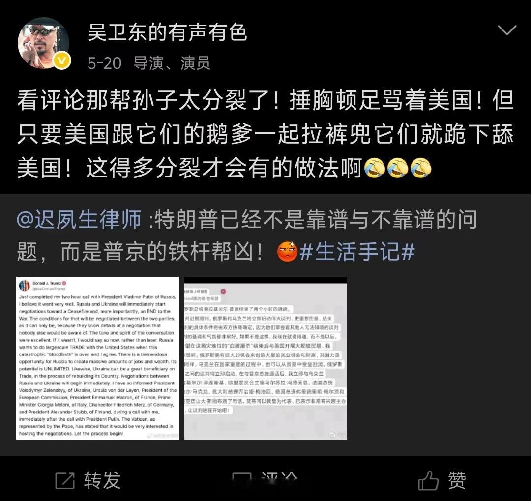 这位名叫吴卫东的演员,演戏专演主旋律,扮演的都是些大人物,导演编剧的也都是些主旋律影视剧,怎么说话这么口无遮拦?⭐连外国人夸一下国内治安环境好,他都要怼一下,如此两面三刀,拍出来的作品怕也是喜欢夹带私货吧?