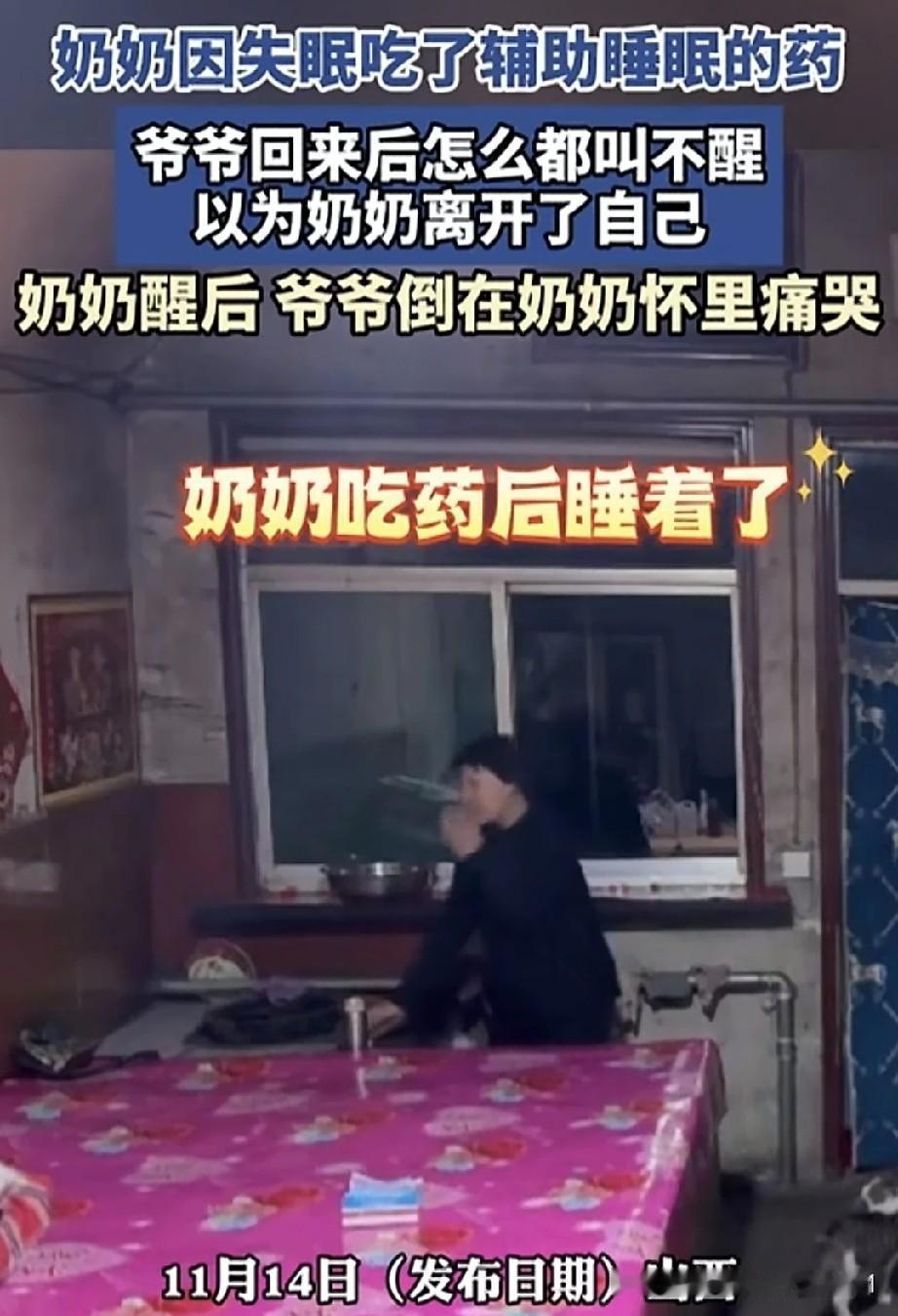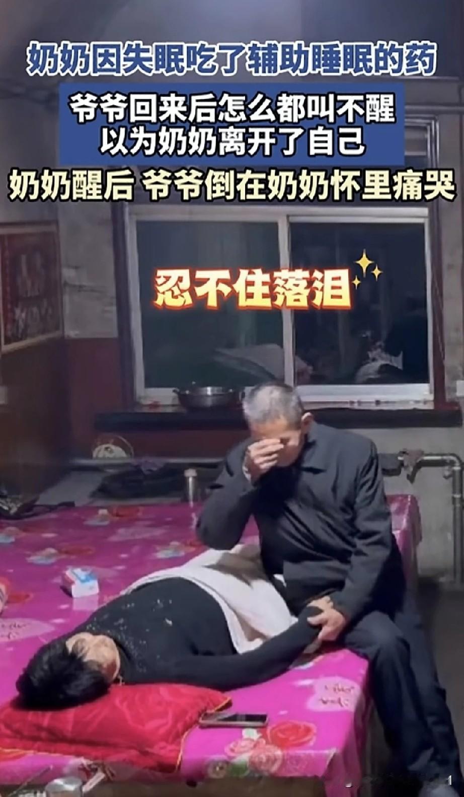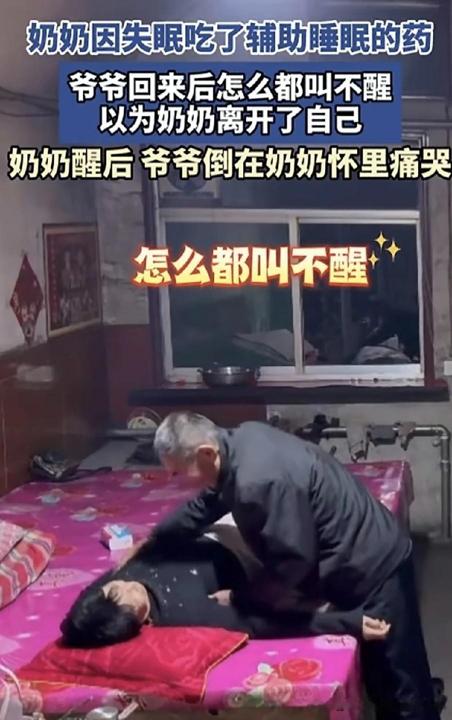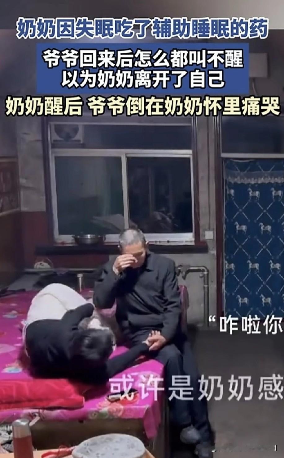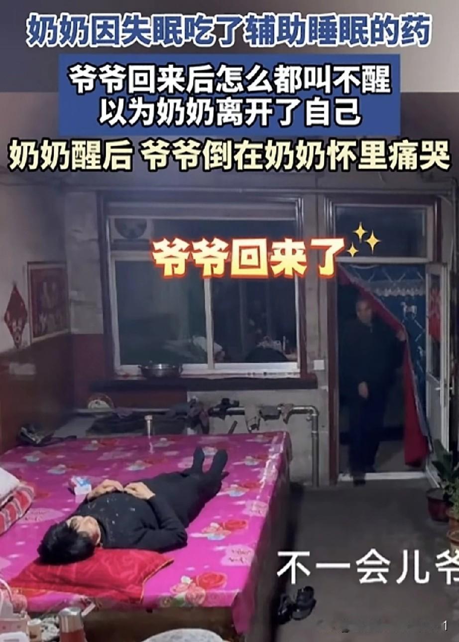 女子发布了一段感人的监控视频。奶奶因失眠吃了助眠药后,躺在炕上睡着了。外出的爷爷回到家,看到奶奶熟睡,便去给她盖被子,却发现怎么叫都叫不醒。爷爷心急如焚,使劲摇晃奶奶,可奶奶依旧不醒。当时爷爷心里肯定以为奶奶没了,害怕极了,赶忙拿起电话通知家人。 爷爷坐在奶奶身旁,拉着她的手,忍不住流下泪来。没过一会儿,奶奶醒了,看见爷爷在抹眼泪,赶紧将他搂入怀中,两人相拥在一起。 看到这一幕,仿佛看到了我们的未来。每个人都会经历这一天,所以要把握当下,珍惜每一刻。其实,所有的事都不算事儿,活着才是最重要的。人老了,最怕的就是这种情况,相伴一生,突然一方离去,这种相濡以沫、白头偕老的感情,实在难以割舍。 年轻时,我们不懂,能磕磕绊绊走到这个年纪,已然十分难得。这时才明白,身边有个伴是多么安心。现在,我不再羡慕路边亲密的情侣,只希望到了这个年纪,也能有个为我担忧的人。