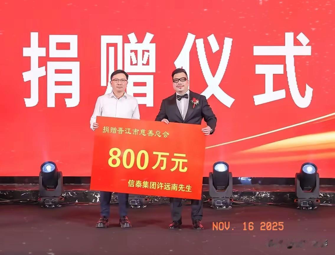 福建晋江信泰集团董事局主席、永和乡贤许远南借爱孙爱许熙铭十六周岁生日舞象吉庆之际,向晋江市慈善总会捐赠800万。2023年许远南先生长孙许琪杭舞象吉庆时,也向晋江慈善总会捐赠800万元。 许远南乡贤热爱慈善公益事业,救灾抗疫,兴学助教,慈善公益捐款累计超过5000多万元,他及其家族被晋江市人民政府授予“慈善世家”荣誉称号。