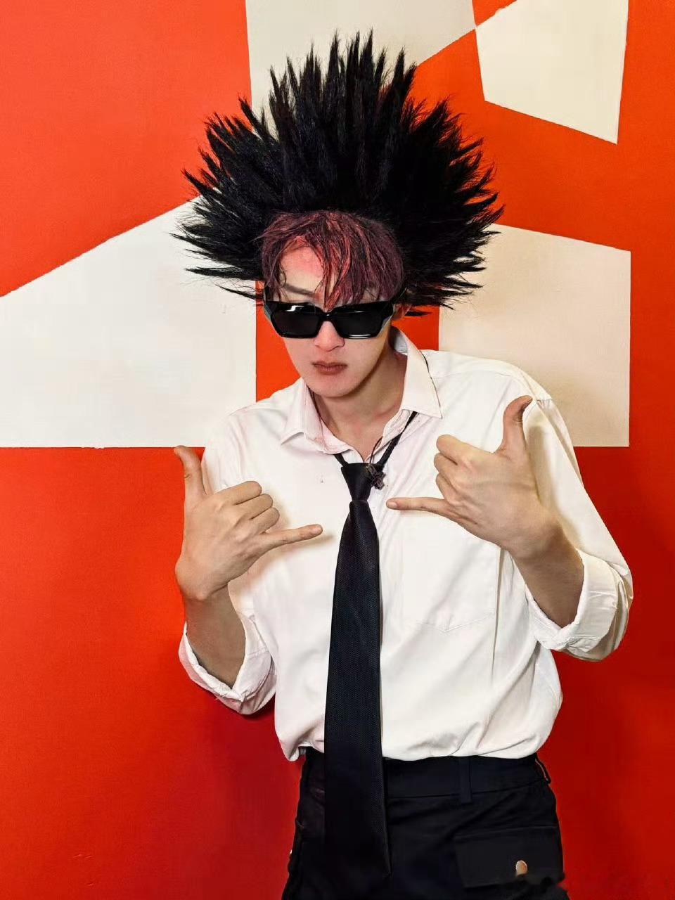 檀健次《》挑战爆炸头,你别说,带上这个假发套还有点像龙珠的发型,真是酷的没边了