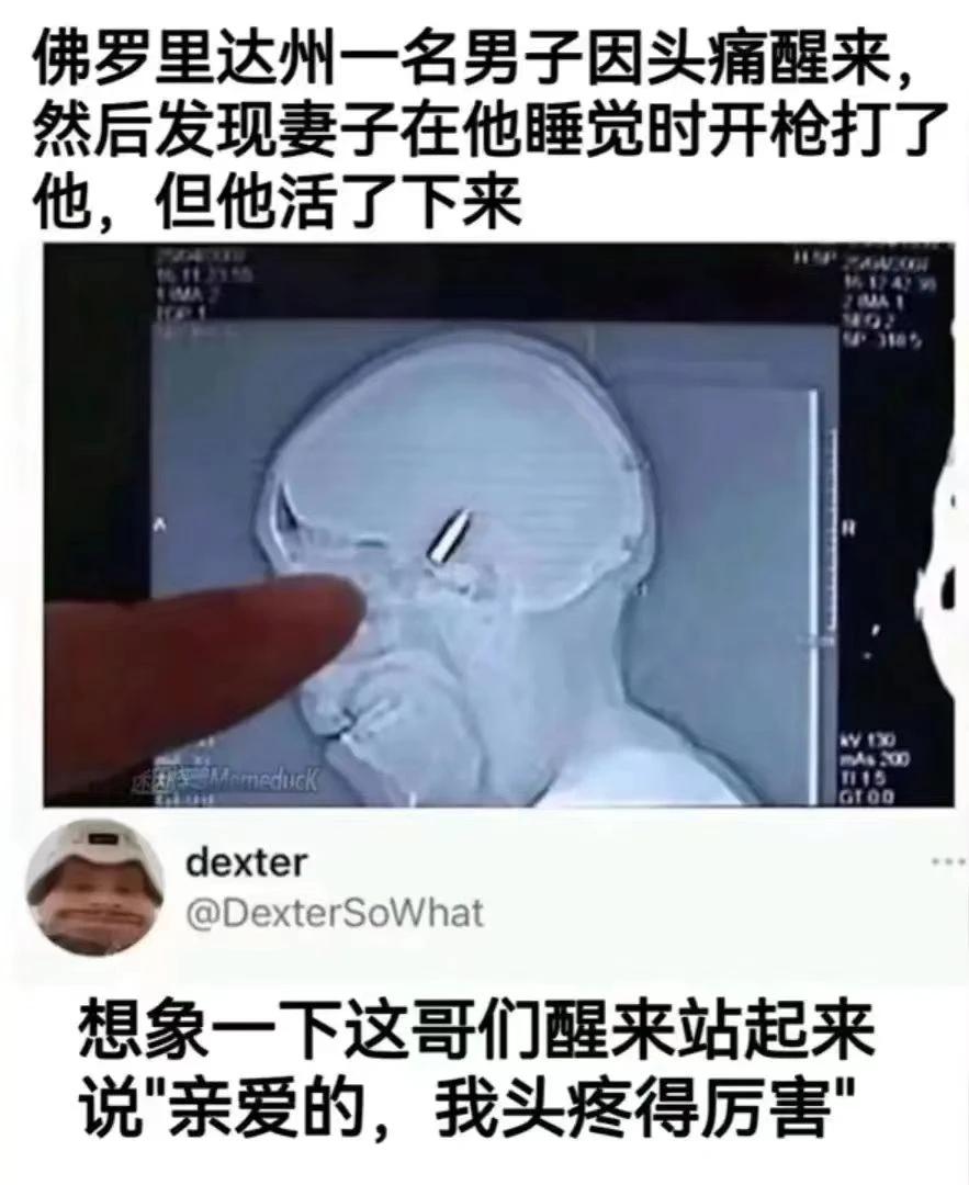 想象一下这哥们醒来站起来说“亲爱的,我头疼得厉害”