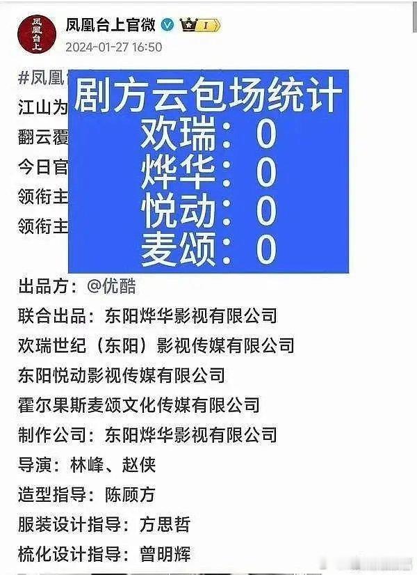 👖哭晕在厕所🥹,欢瑞、烨华给🐧🥝不相关的剧都☁️包场了,独独👖的《凤凰台上》不包,国超一个离职员工都包了呢 🥹