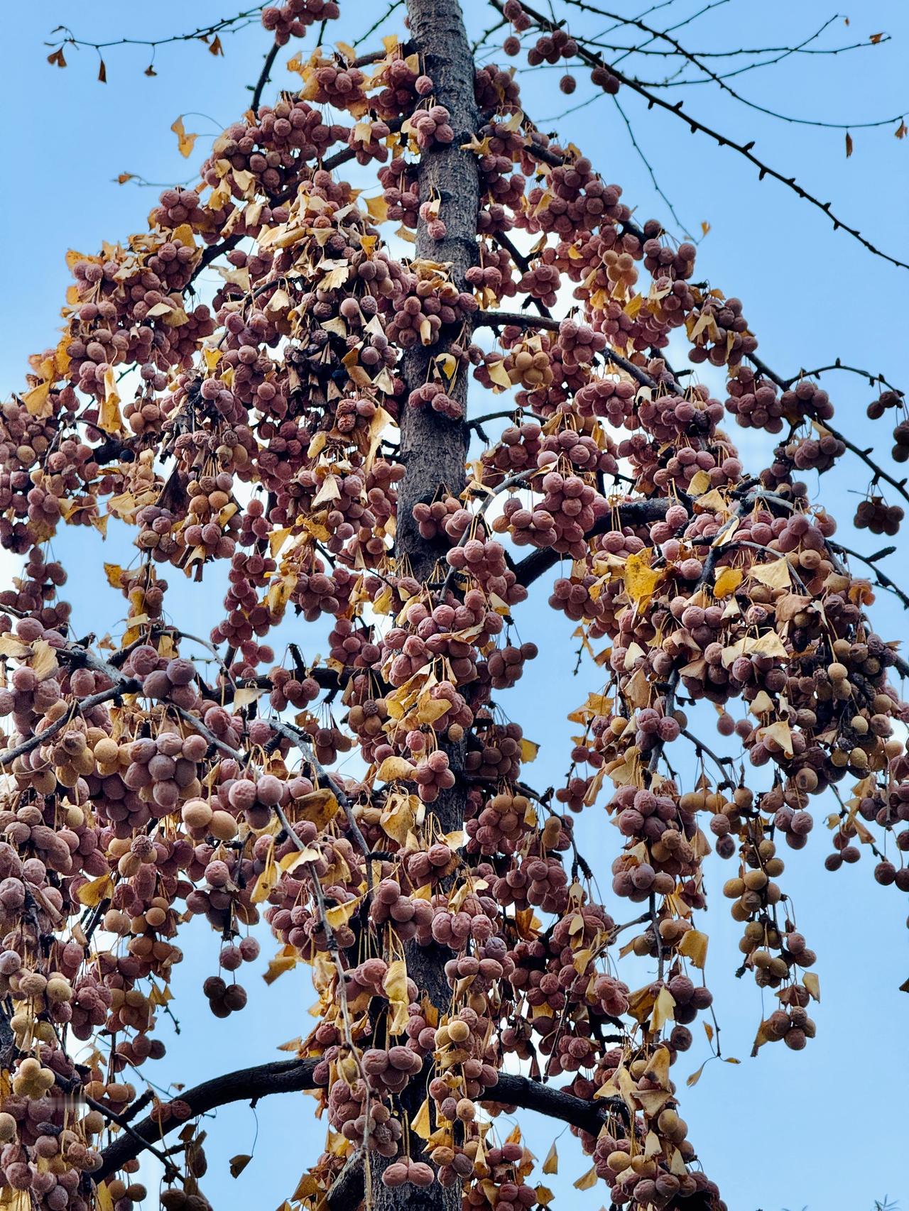 秋天,被打翻在地上,画上了句号。风,是秋天的终结者,也是冬天的开路先锋。 银杏,北方秋景的颜值担当、无与伦比的主角。人们独爱它满树金灿灿的叶子,却对它滋养、庇护的累累果实提不起兴趣。 寒冷,是苦的。熬过苦寒,才能迎来春天的希望。
