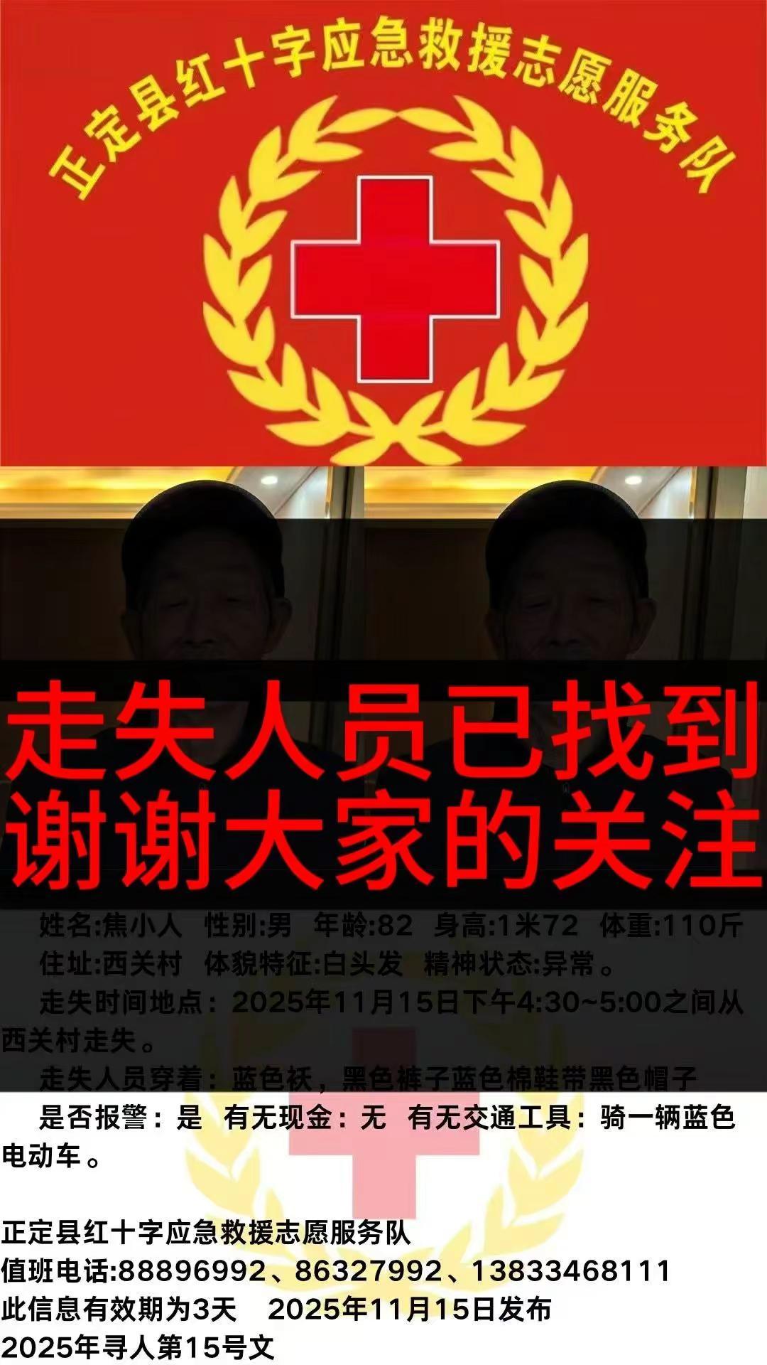 找到了!历经煎熬的几个小时,老人终于在凌晨安全找到平安回家。感谢所有转发、帮忙寻找的志愿者和好心人!愿天下父母都平安健康。🙏