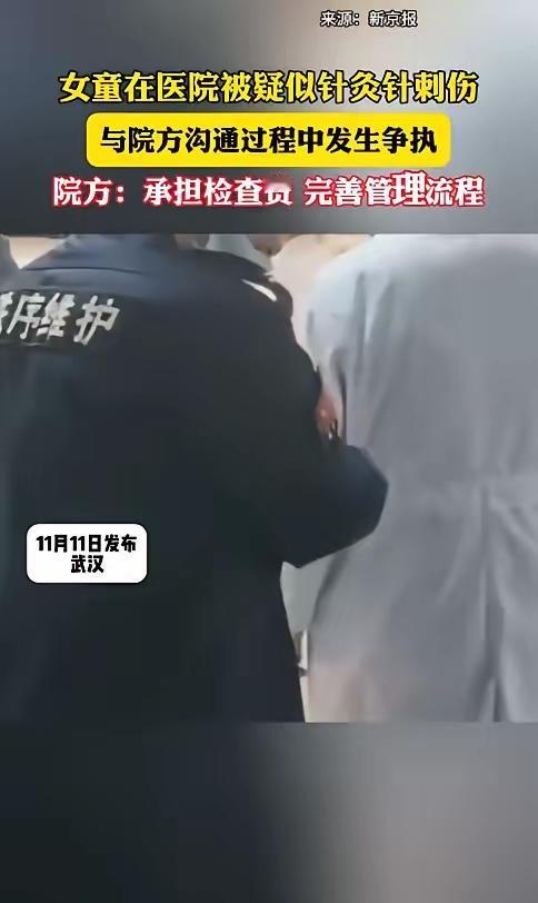 “严查到底!”11月9日,湖北武汉,一女子带着女儿去医院看病,坐在椅子上休息时,女孩突然感觉被什么东西扎了一下,女子仔细检查,竟找到一根针,女子担心伤口会感染,去找医生沟通,不料却遭到对方的呵斥!网友:态度真恶劣。 后来大家才知道,那根针看着像是针灸用的针,尖尖的,看着就让人心里发紧。女子抱着哭唧唧的女儿,追着医生问要不要做感染检查,会不会有后遗症,医生却不耐烦地挥手,说她小题大做,针灸针都是消毒过的,哪来那么多风险。 这话彻底惹火了女子,她指着女儿的伤口反驳,就算消毒过,也是被人用过丢在那的,谁知道之前扎过什么人,有没有传染病。两人你一言我一语吵了起来,引来了更多围观的患者,有人觉得家长紧张孩子没错,也有人觉得医生天天面对那么多病人,难免有情绪。 没过多久,院方的人赶了过来,一边拉劝一边表态,说愿意承担孩子所有的检查费用,还会彻查这根针的来源,完善医院的管理流程。可女子心里还是堵得慌,检查费是小事,孩子受了罪,还被医护人员呵斥,这份委屈没人能替。 网友看完新闻,议论得更凶了。有人说院方的处理还算有诚意,但医生的态度必须道歉;也有人担心医院管理有漏洞,这次是针灸针,下次要是更危险的东西怎么办。大家都盯着后续,就想看看这根针到底是谁丢的,医生会不会为自己的态度负责,毕竟医院是让人安心看病的地方,可不能让患者既伤身又伤心。 信息来源:《女童在一医院被疑似针灸针刺伤,家长忧感染与医护争执,院方:承担检查费完善管理流程》新京报