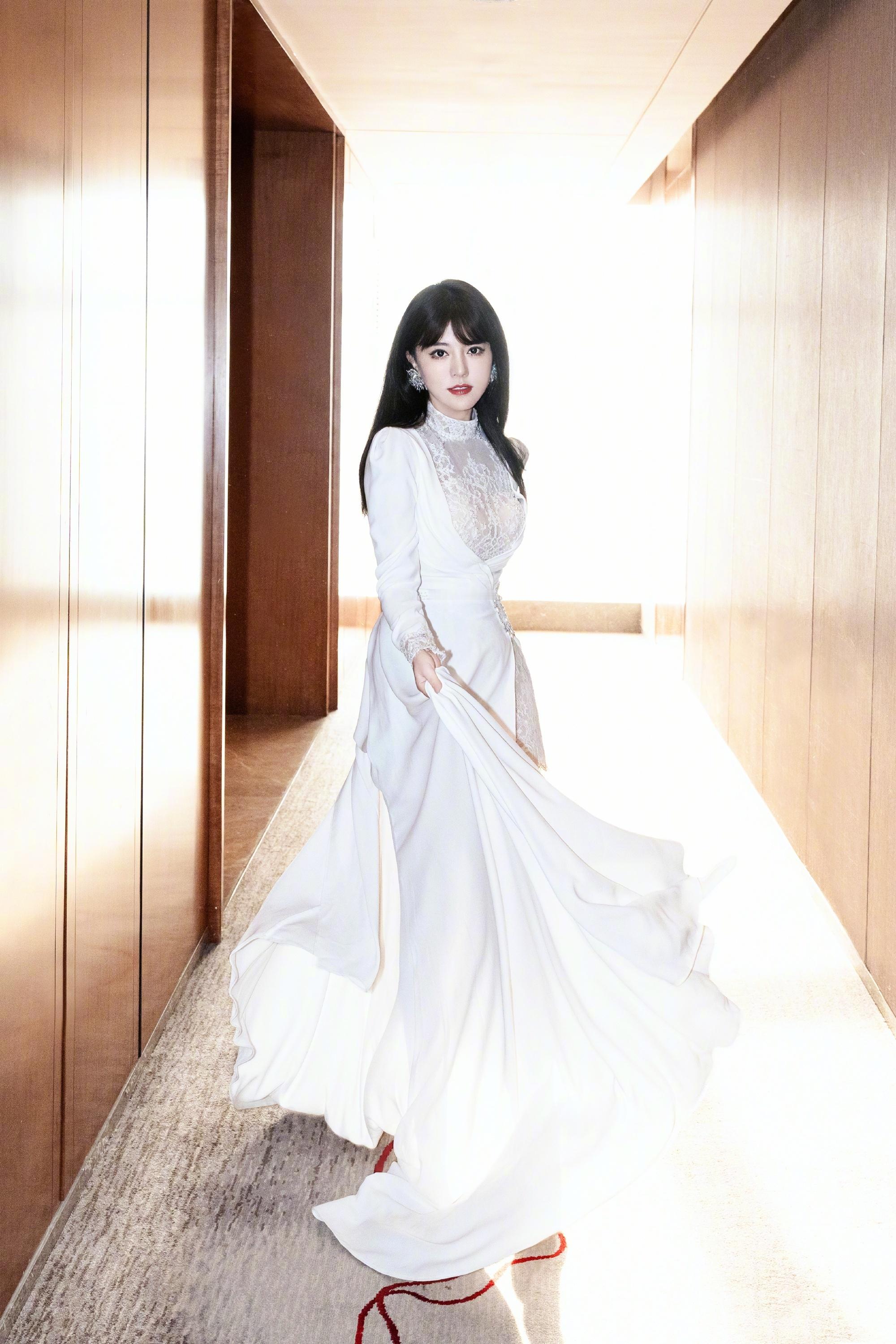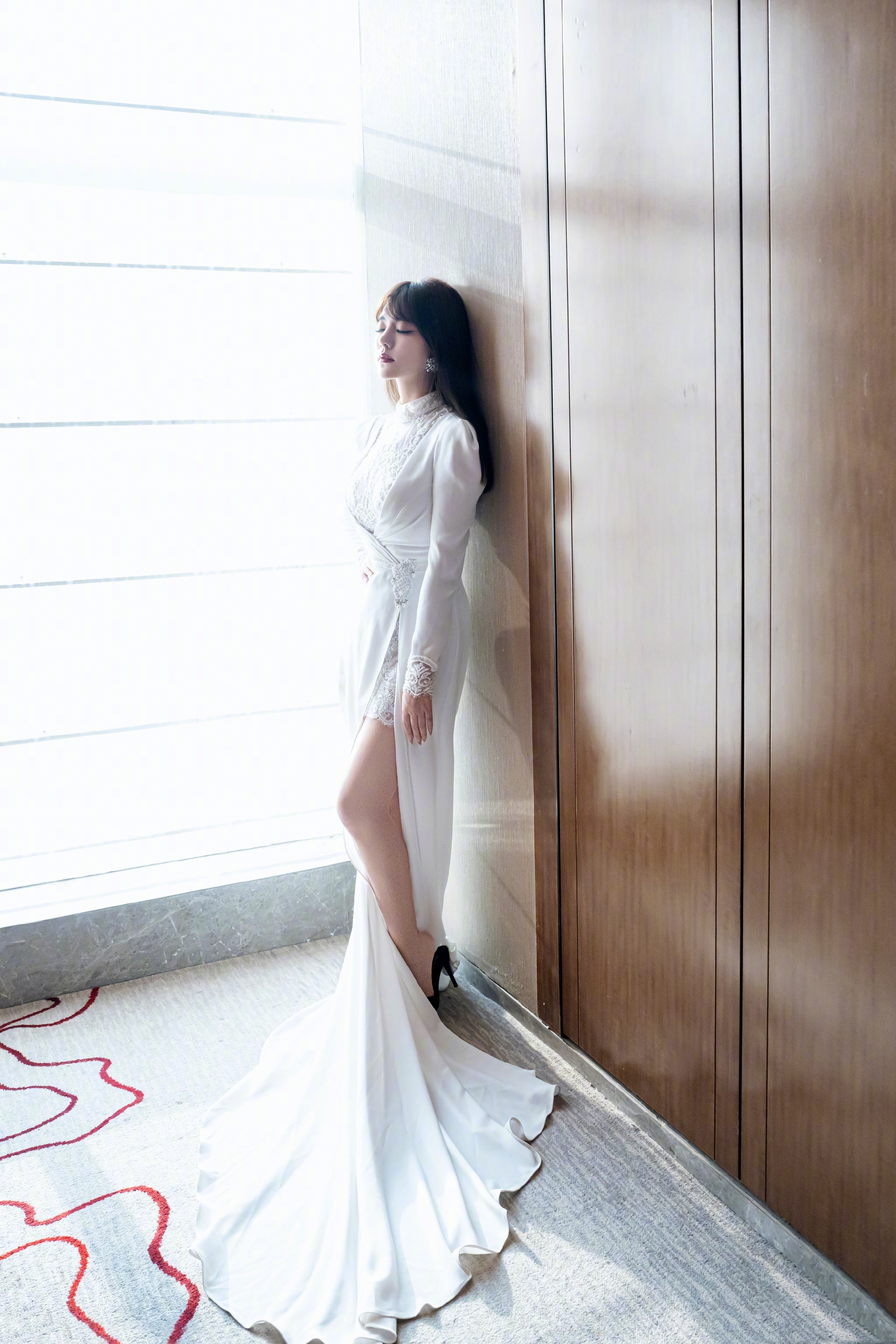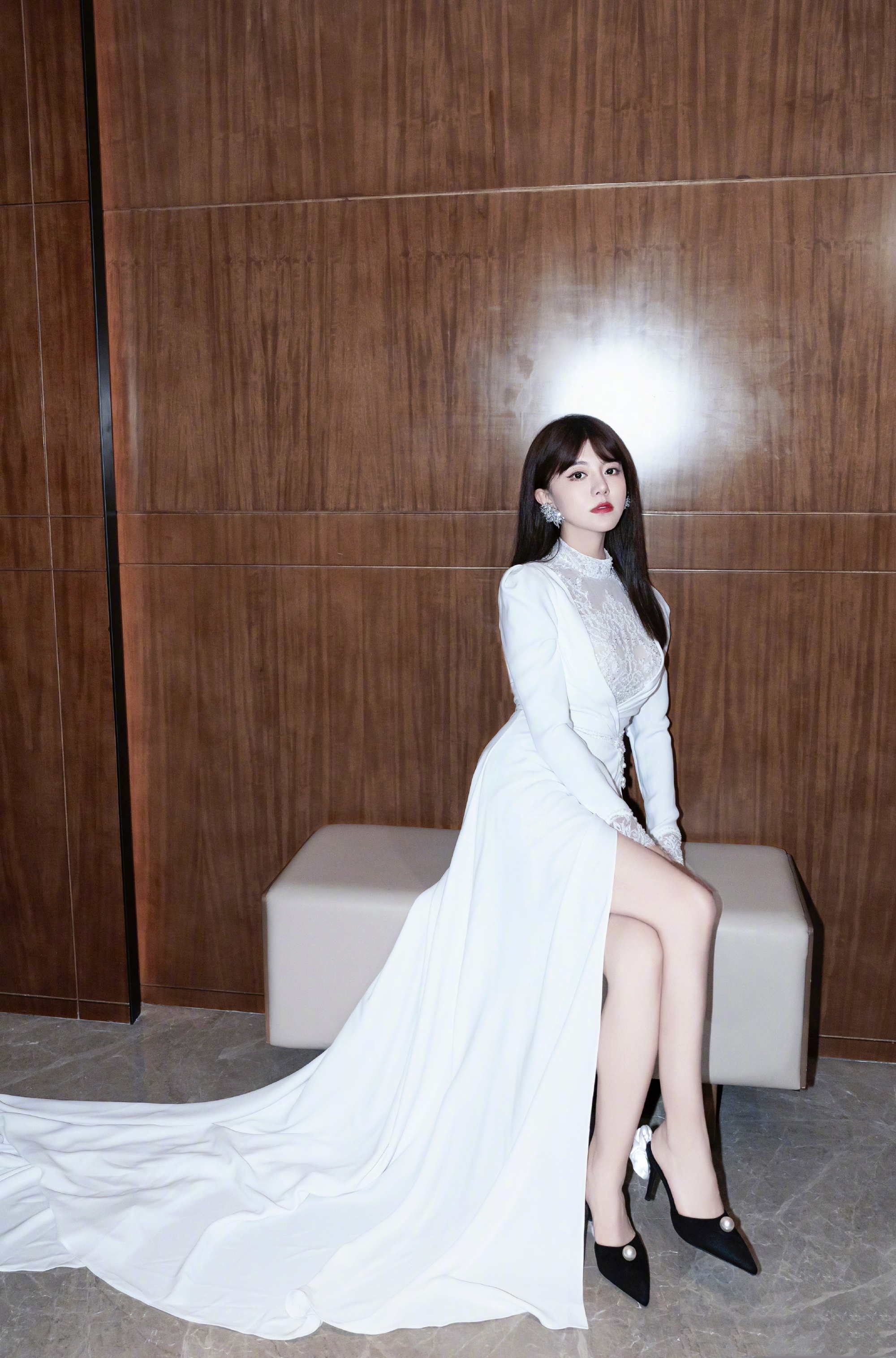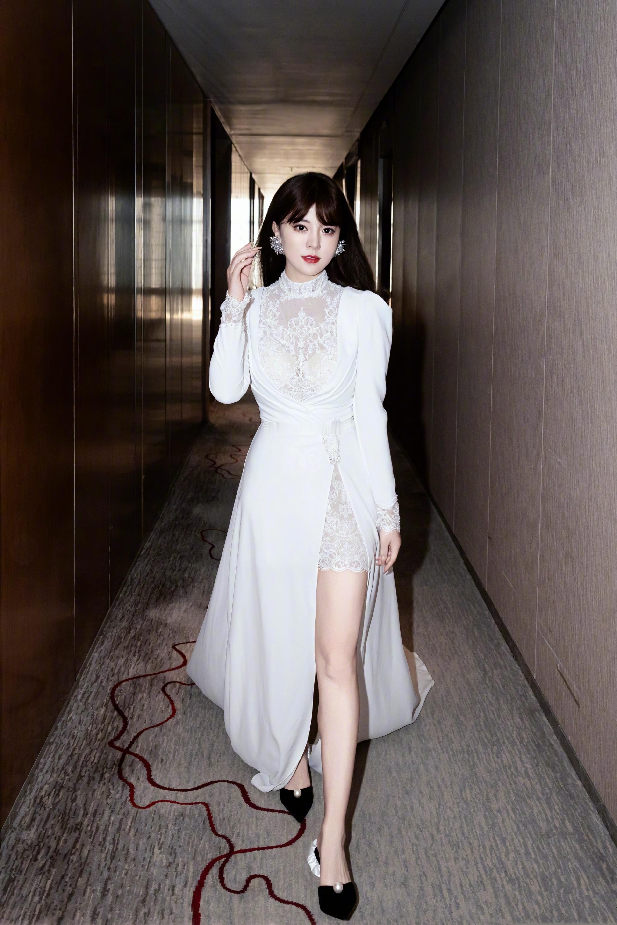 徐璐姐姐的一组美腿妆造型,白色短裙尽显优雅格调